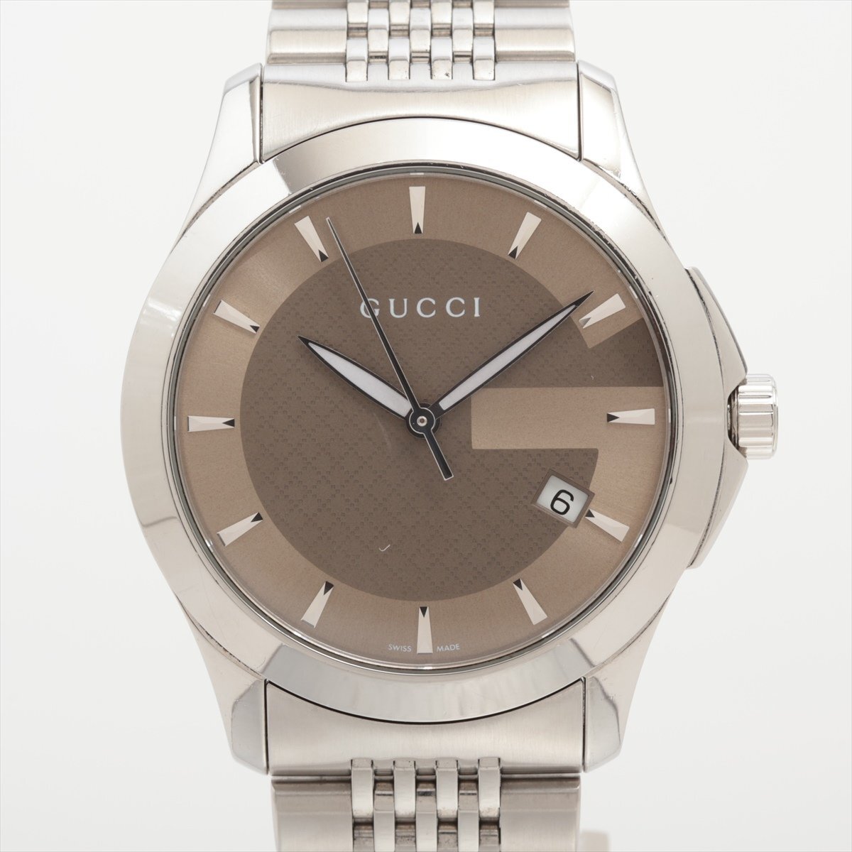 ■ 1円 ~ 中古品 参定14.4万■ グッチ GUCCI ■ Gタイムレス 126.4 ■ クォーツ シルバー ベージュ ステンレス メンズ YA126406