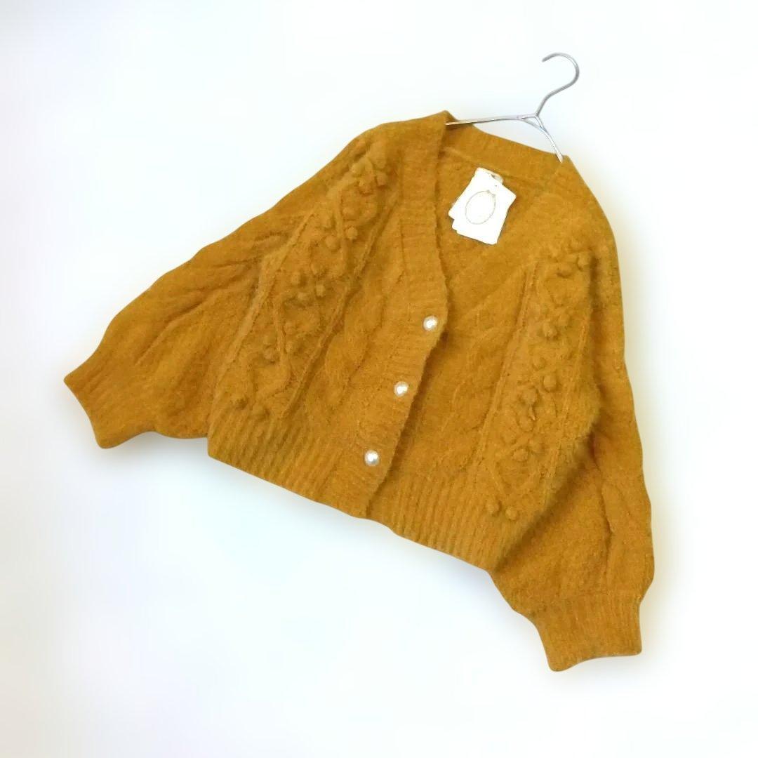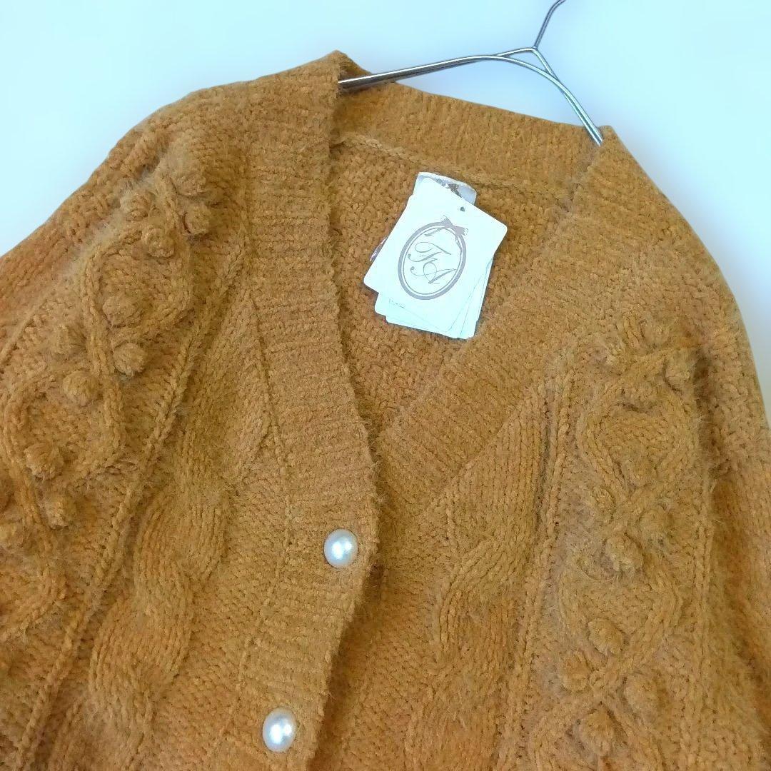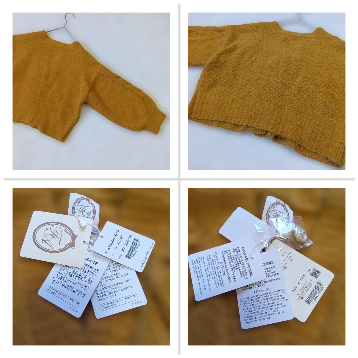 訳あり新品タグ付き ショート丈カーディガンF マスタード 七分袖 中国製 194DE8