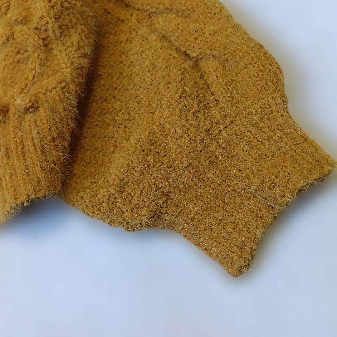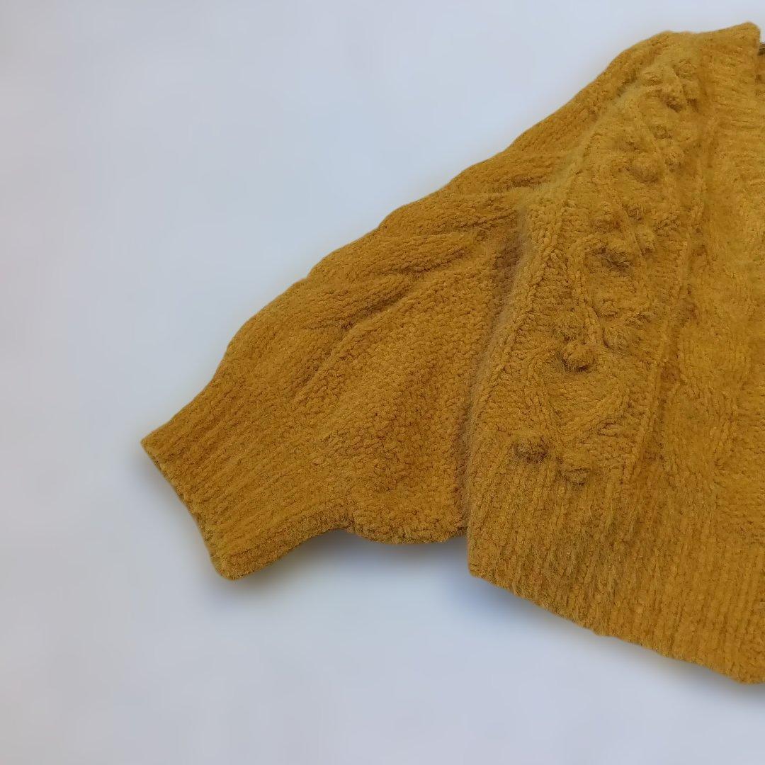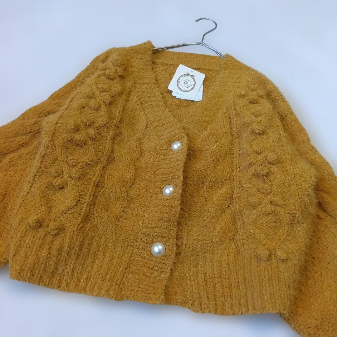訳あり新品タグ付き ショート丈カーディガンF マスタード 七分袖 中国製 194DE8