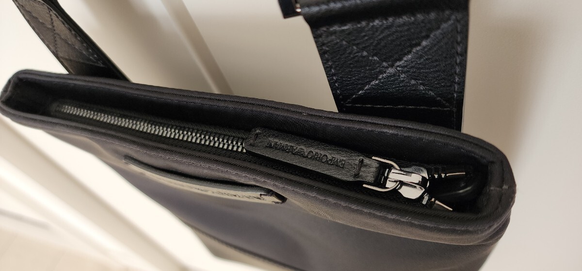 EMPORIO ARMANI/エンポリオアルマーニ ショルダーバ ッグ ブラックレザー メンズ 新品購入後、数回のみ使用の極美品 1円スタート!