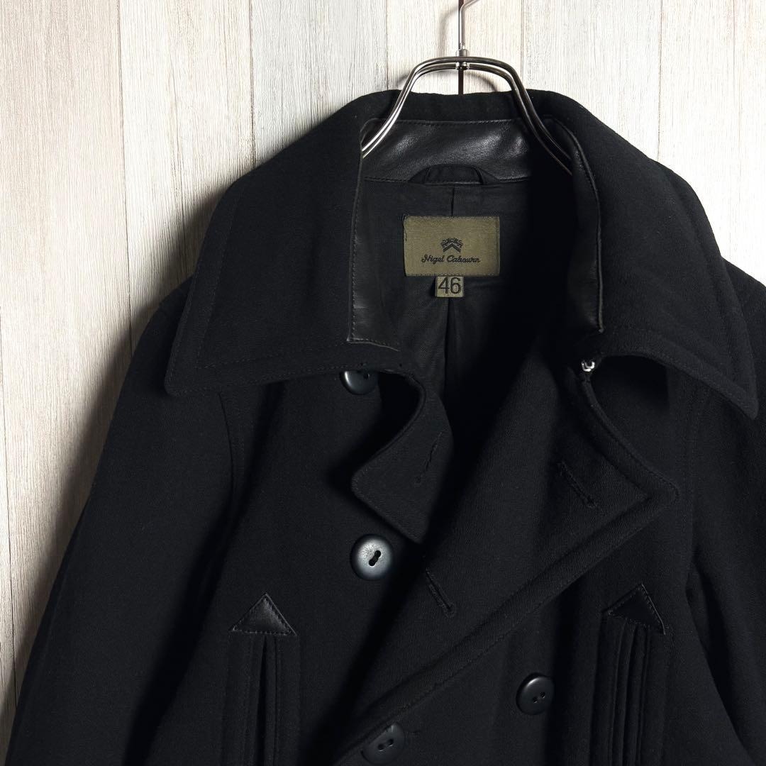 【未使用級・極美品】Nigel Cabourn ナイジェルケーボン レザーコンビ 40's US NAVY ミリタリー ピーコート ブラック・黒 46 M相当