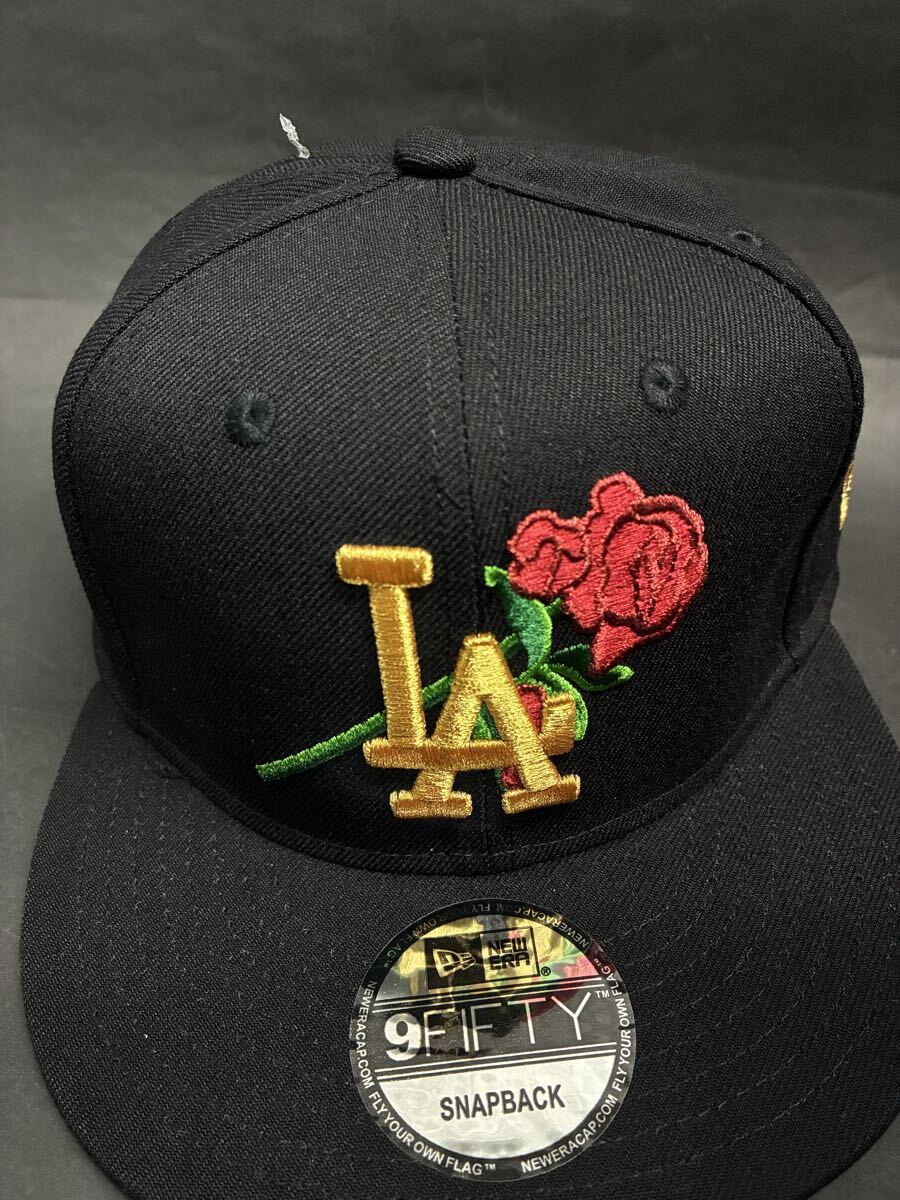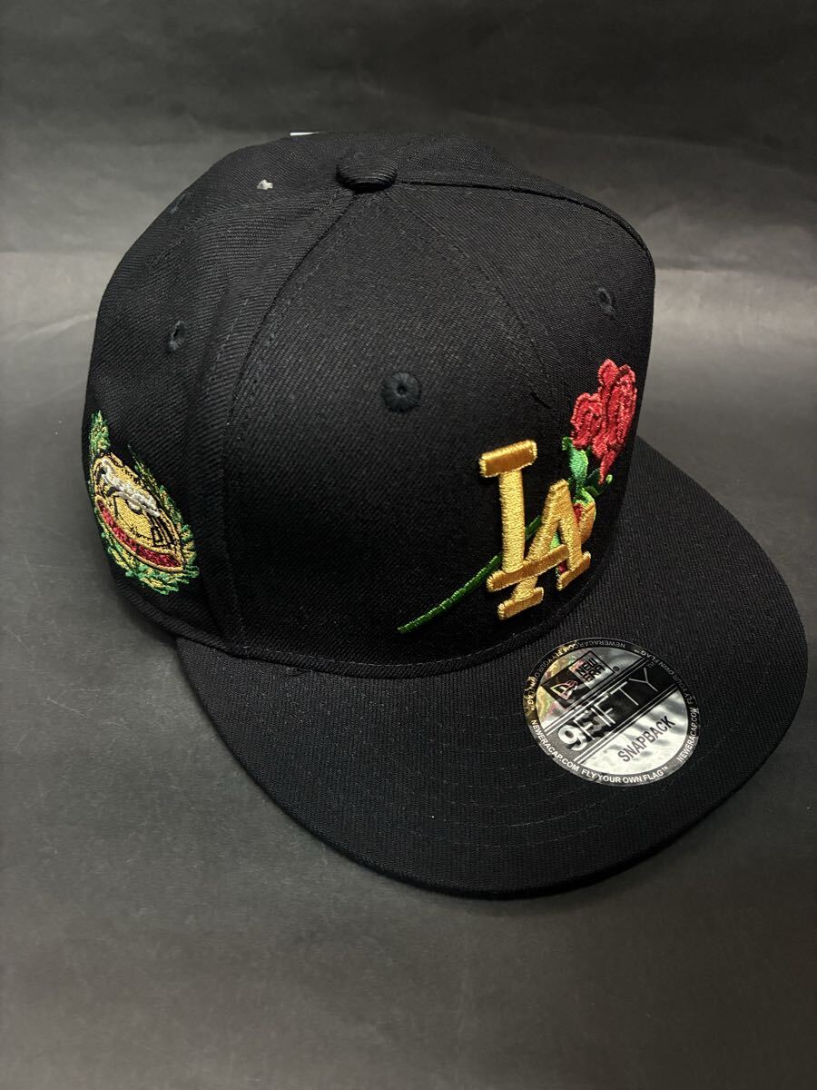 New Era ロサンゼルスドジャース 9FIFTY スナップバックキャップブラックゴールドローズロゴWSモデル