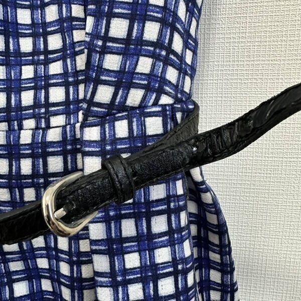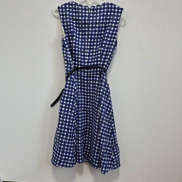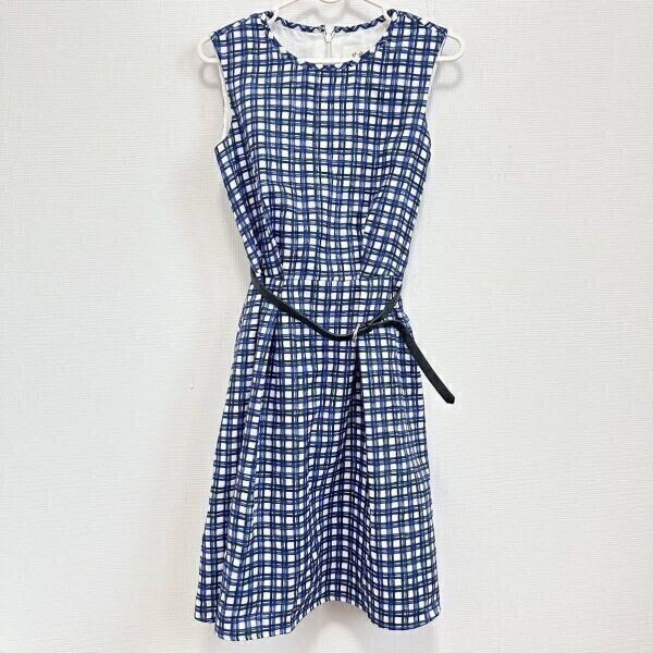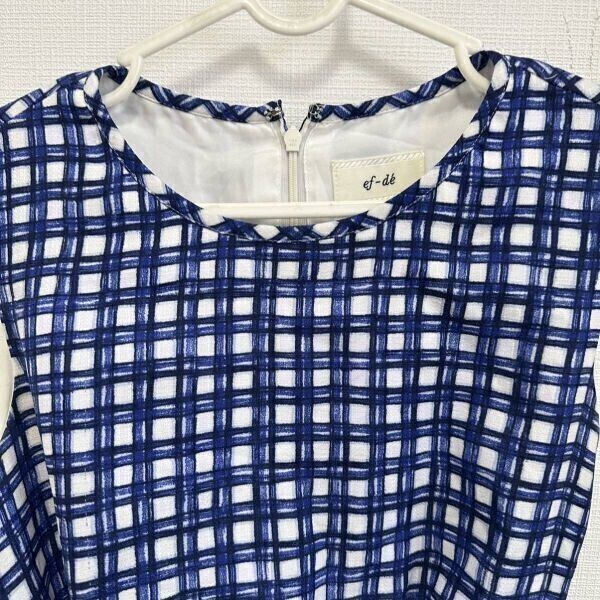 ef-de 日本製 ノースリーブワンピース ギンガムチェック ブルー ホワイト ベルト付き 膝丈ワンピース◎16-03
