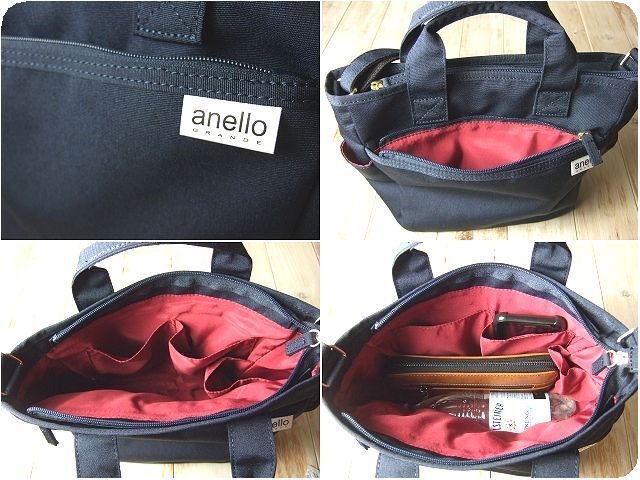 単色なので持ちやすく、サイズ感も丁度良い。ポケットも充実していて使い勝手がよいバッグです。 配色の内生地と【anello】「GRANDE」のネームタグがアクセントになっています。
