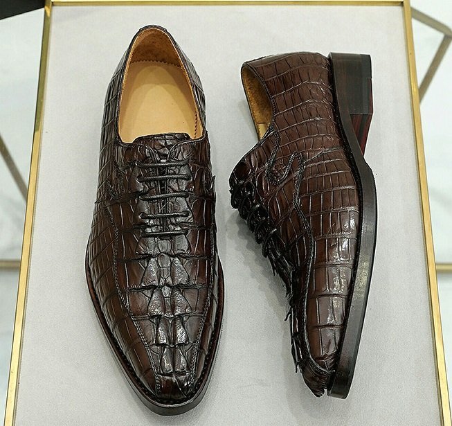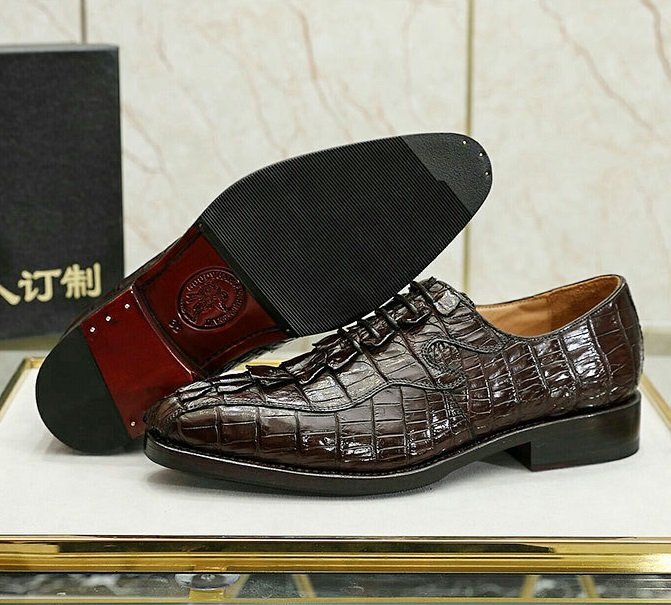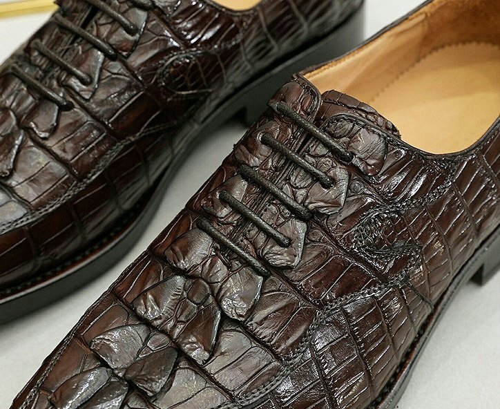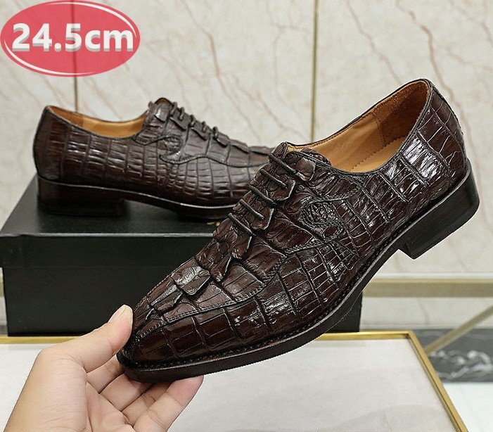 クロコダイルレザー ビジネスシューズ 最高級 ワニ革 クロコダイル 靴 メンズシューズ 革靴 ブラウン 24.5cm 【n781】