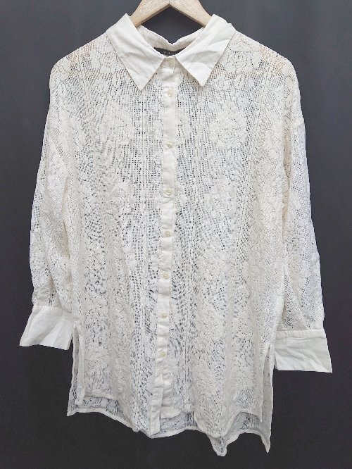 ◇ ⊂ w closet ダブルクローゼット デザインレース 長袖 シャツ ブラウス サイズF ライトベージュ系 レディース P