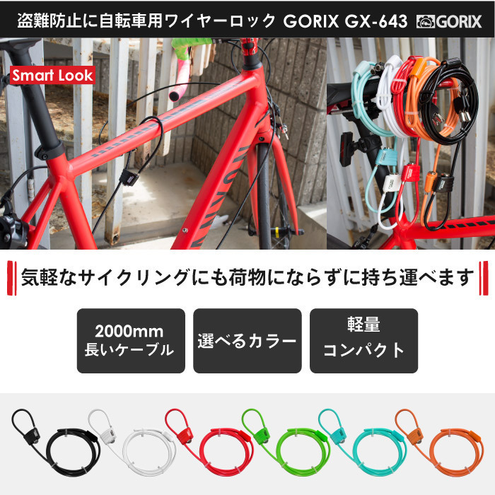 | 自転車駐輪時の盗難防止に活躍するケーブルロック 超軽量なので気軽なサイクリングにも荷物にならずに持ち運べます。 スペアーが2本あるので安心 ツールケースやサドルバッグにも入ります。 ・コンパクトになるので持ち運びも楽々 ・万が一カギを無くしてもスペアーキーあり ・自転車全般、ロードバイク、マウンテンバイク、クロスバイク、ミニベロに 1台のパーツを丁寧にロックしたり、複数台通してロックしてもOK! ・2mの長さで、前後ホイールとフレームを通しても余裕があります。 車体にも通しやすい柔軟性のあるケーブルなのでツールケースにも入りコンパクト ・錠部分は取り外しケーブルだけで扱えるので軽くて便利です。 また、ケーブル全体にラバーコートされているので車体を傷つけません。 鍵サイズ:幅W36.9 x 直径D15.6 x 高さH29mm ケーブルサイズ:直径φ4.8mm / 長さL2000mm 重量:140g 付属:カギ2本、説明書 商品のカラーはディスプレイ種類環境等により実物と異なって見える場合がございます。 入荷時より細かい傷やある事があります。気になる方や神経質な方はご購入をご遠慮ください。 | |