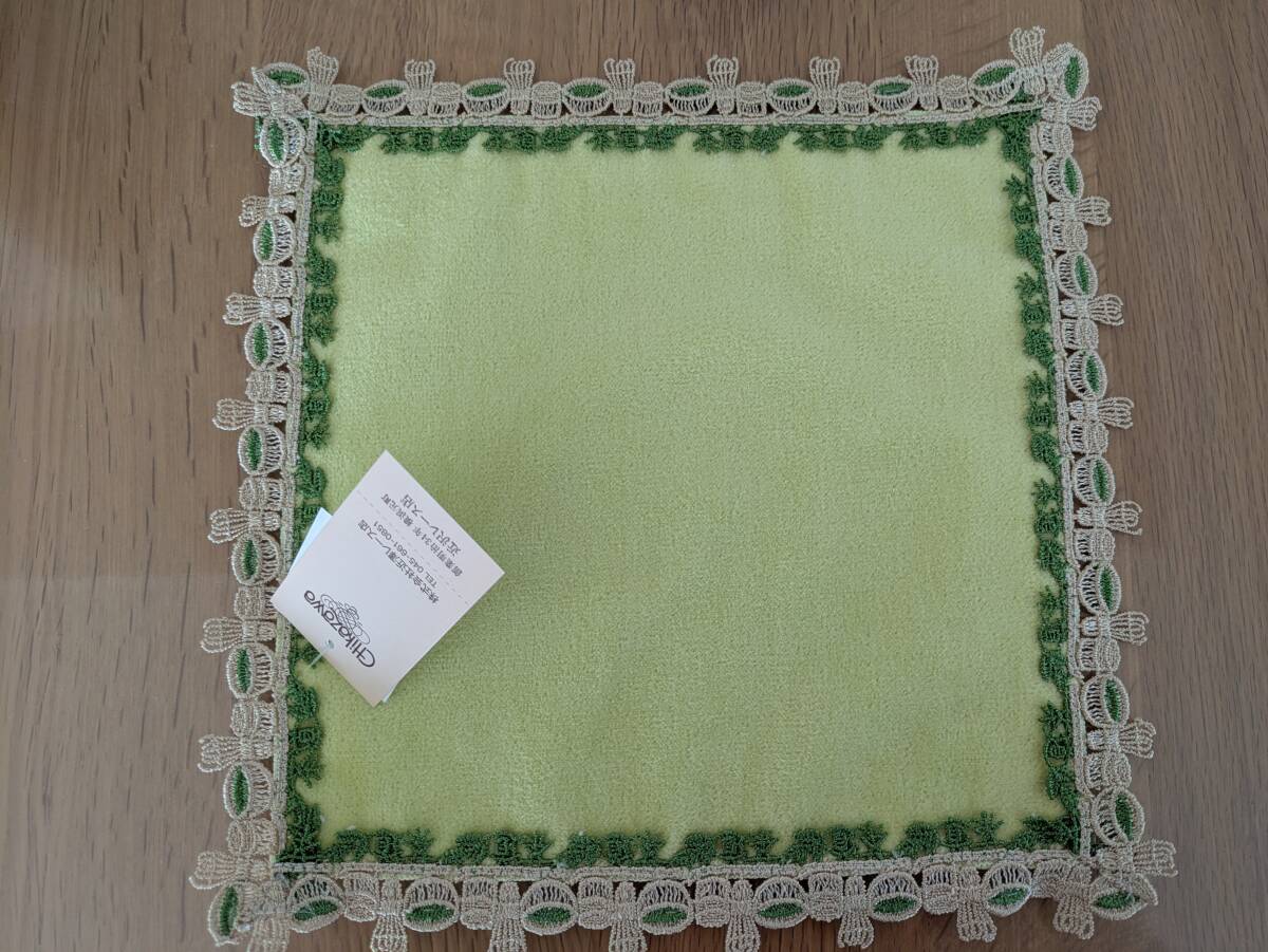 近沢レース 和レース 茶道 タオルハンカチ カラー:イエローグリーン 素材:綿100% レース:ポリエステル 100% サイズ:約23.5x23.5cm