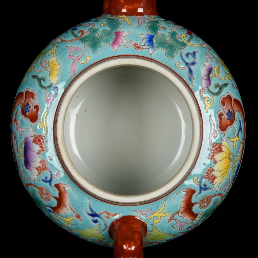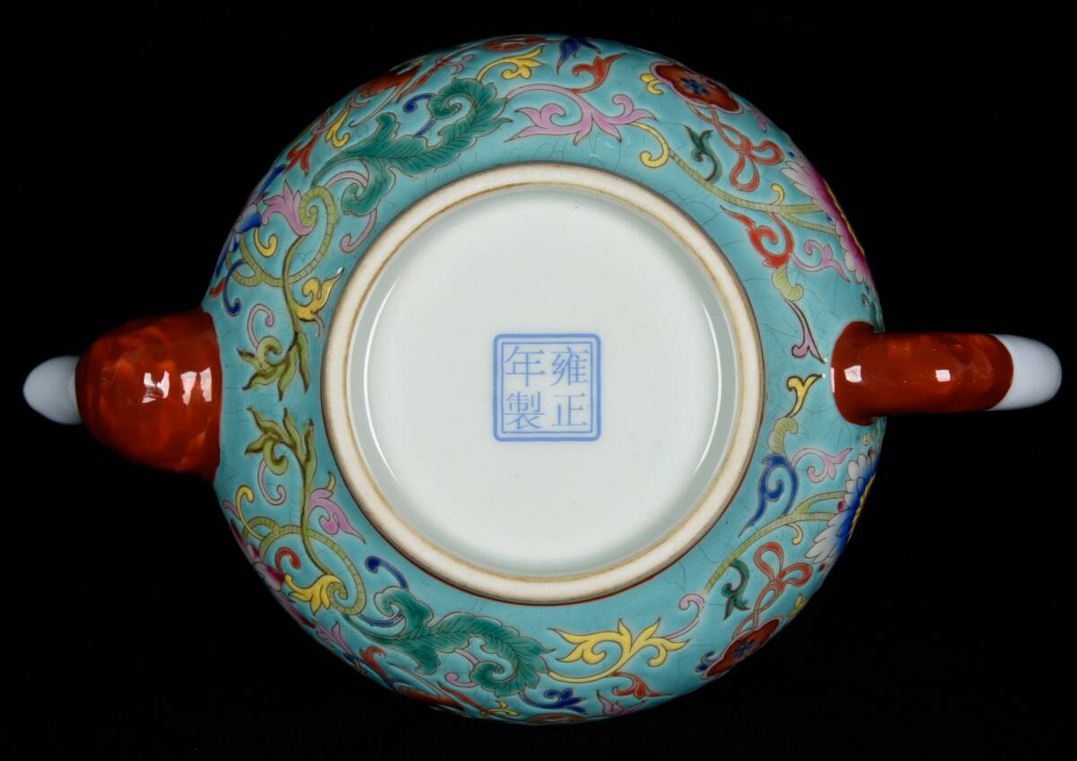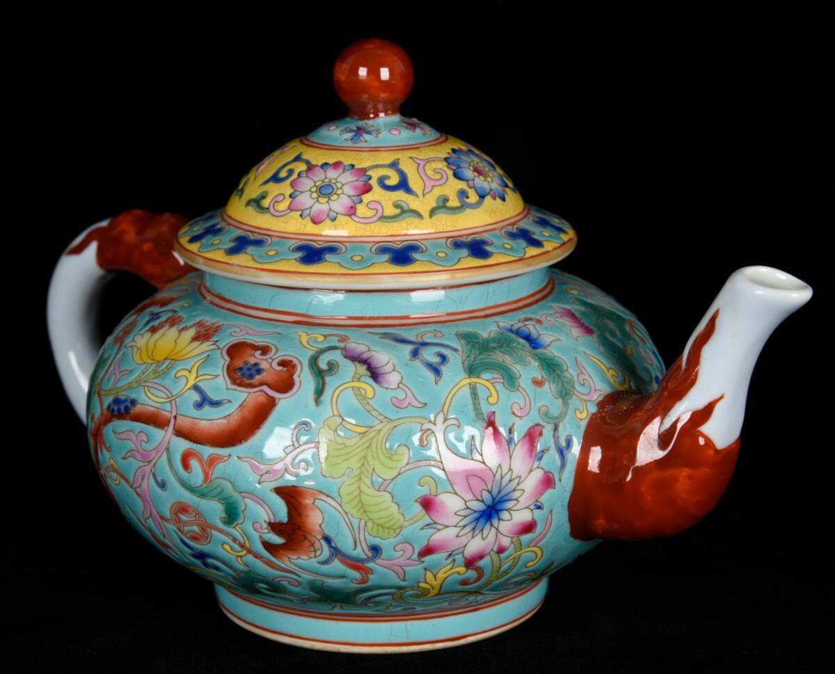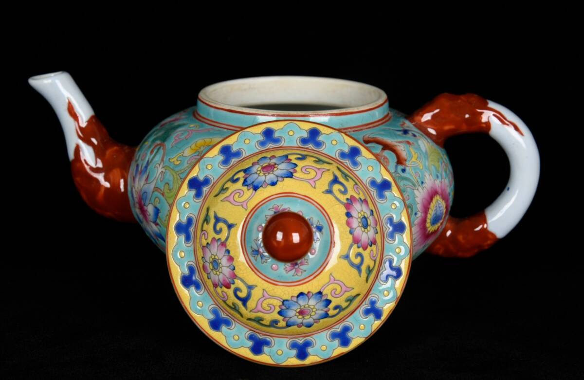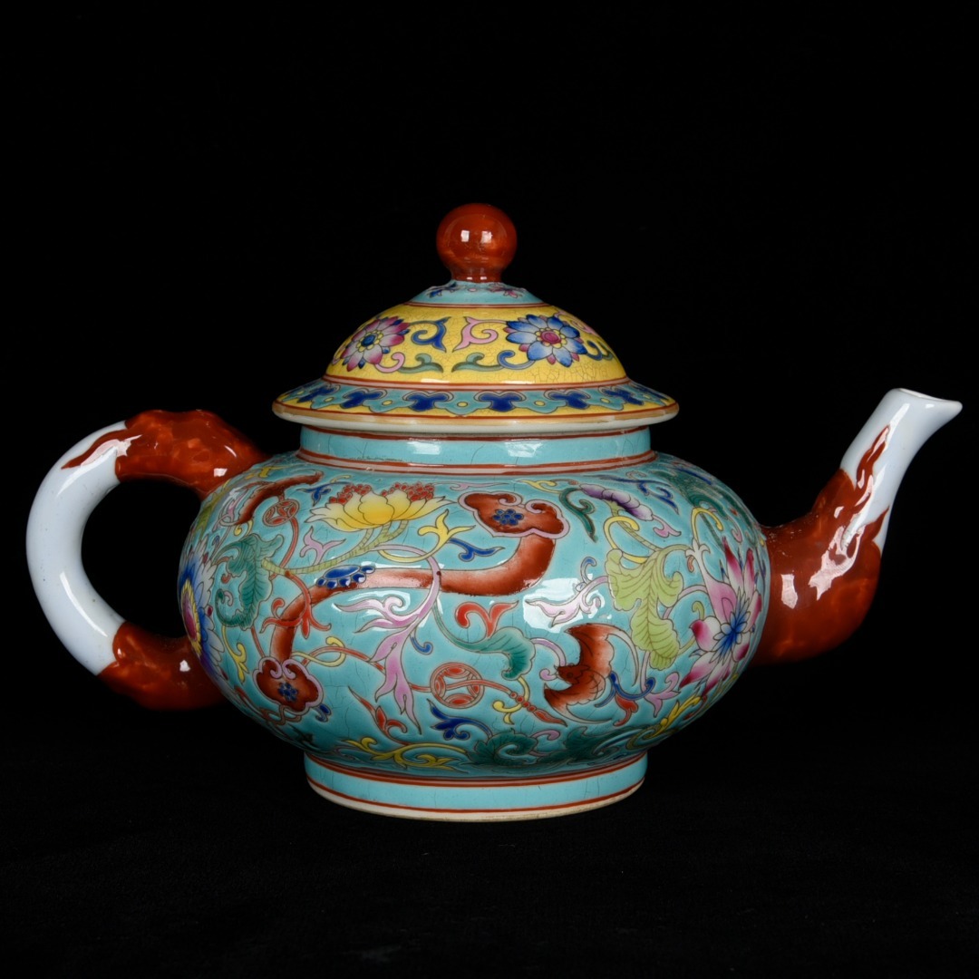 館蔵 清時代 雍正年製 緑地 琺瑯彩 纏枝花如意紋 茶壺 酒壺 古陶瓷 陶磁器 中国古美術 古美味 蔵出