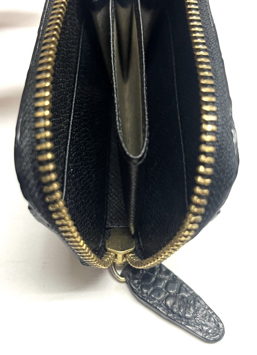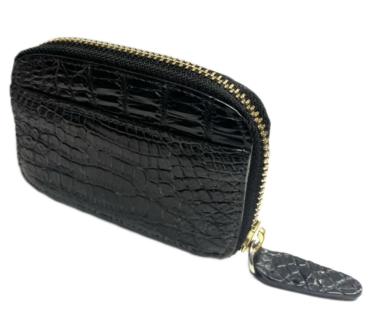 クロコダイル★ラウンドジップ ワニ革 小銭入れ 本革 レザー コインパース コインケース 財布/ブラック