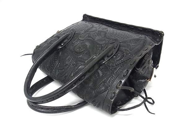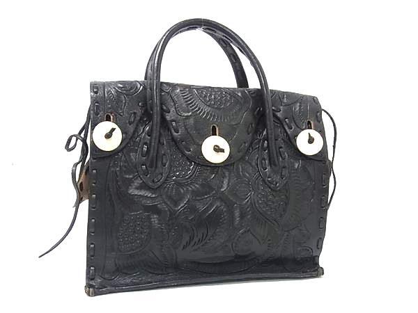 1円 ■美品■ GRACE CONTINENTAL グレースコンチネンタル カービングトライブス レザー ハンドバッグ トートバッグ ブラック系 BS1406