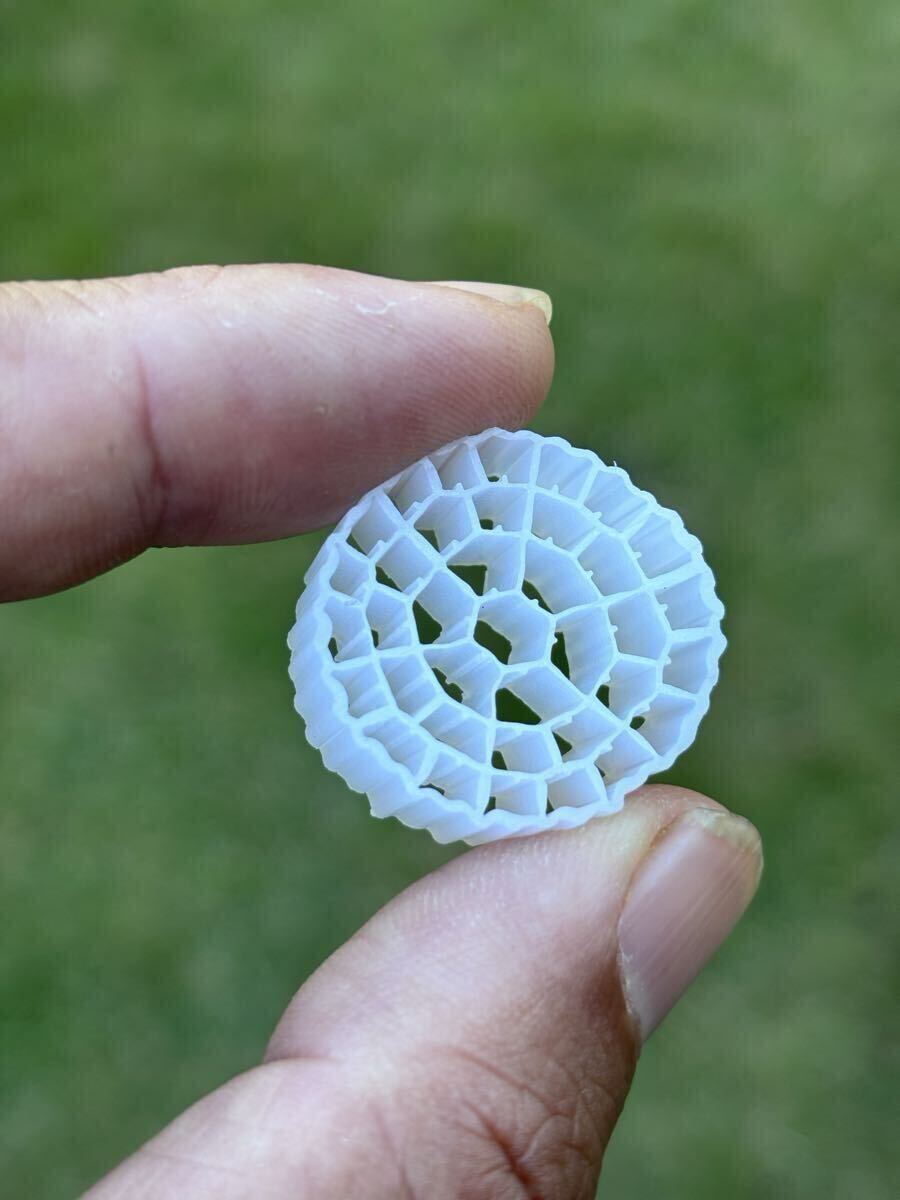 濾材が自ら流動するため、濾過槽内にデッドスペースができにくく、水の腐敗や悪臭の原因となる嫌気環境の発生を抑えます。また、材質には耐久性の高い高密度ポリエチレン(HDPE)を使用。長期間使用しても変形しにくく、濾材同士の衝突にも強いため、交換頻度を減らせて経済的です。