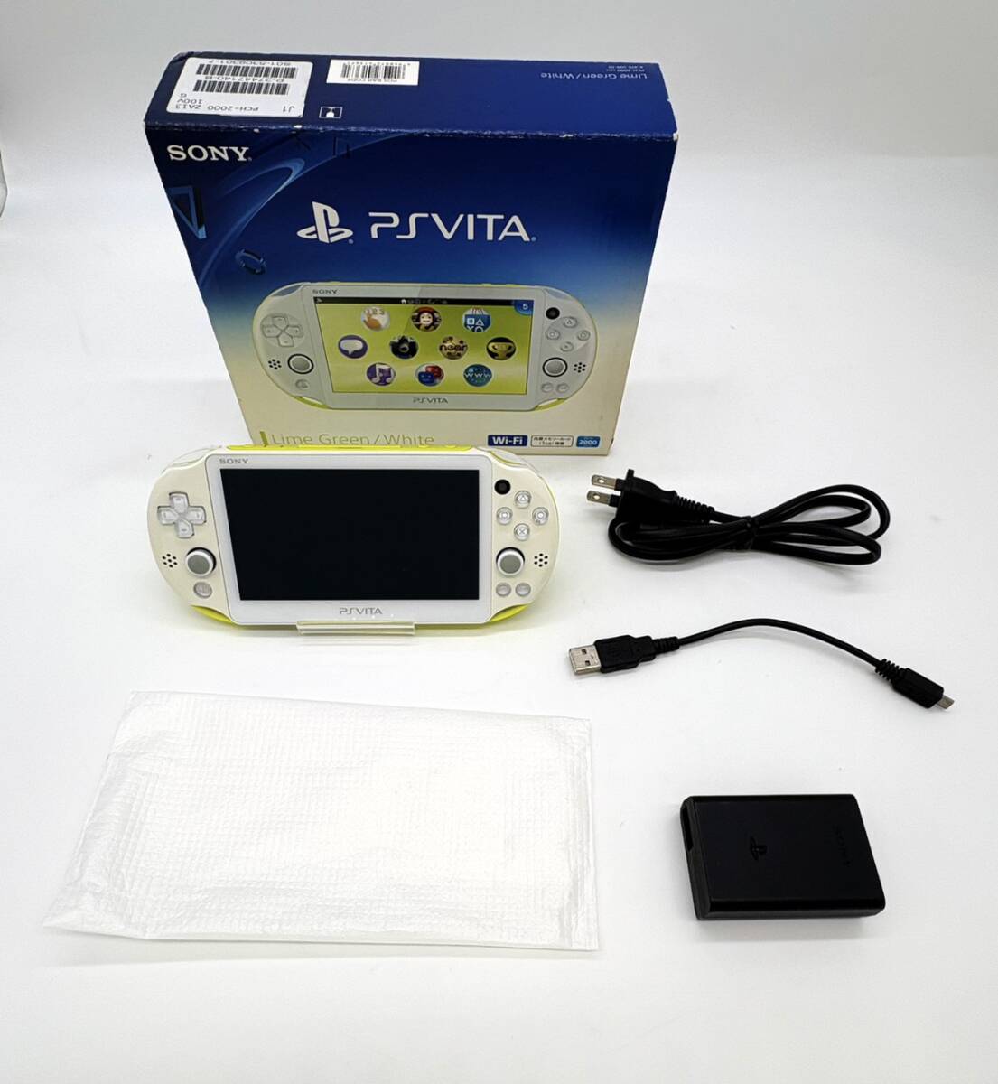 ★商品説明★ PlayStation Vita Wi-Fiモデル ライムグリーン/ホワイト 型番 (PCH-2000ZA13) メーカー生産終了品になります。 動作は問題ありません。 付属品 外箱、内箱、PSVITA本体、USBケーブル、電源コード、取扱説明書。 写真に写っているものがすべてになります。 中古品になりますがあまり使用感がなく綺麗なコンディションです。 極美品になります。画面、本体共に綺麗です。 写真にてご確認お願い致します。 送料無料でお届け致します。