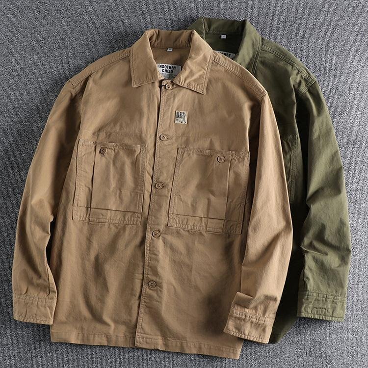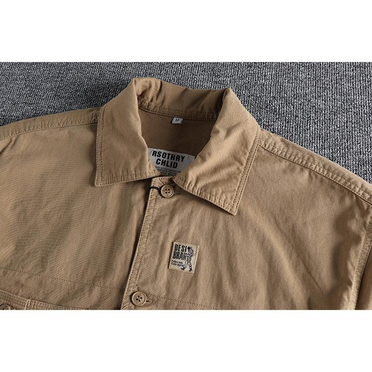 ライトアウター ミリタリー ワークシャツ メンズ 長袖 無地 綿 カッコイイ ポケット ボタン留め ミリタリージャケット 春秋1 00%コットン