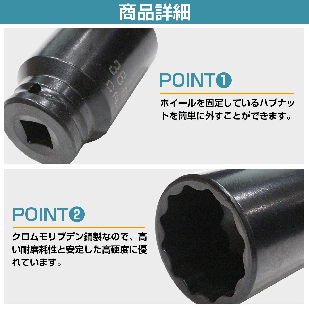 1/2 12.7sq インパクト用 ハブナット 外し 30mm 32mm 36mm 12角 二重六角 ハブソケットセット セミディープソケット 緩め作業 車 整備 工具