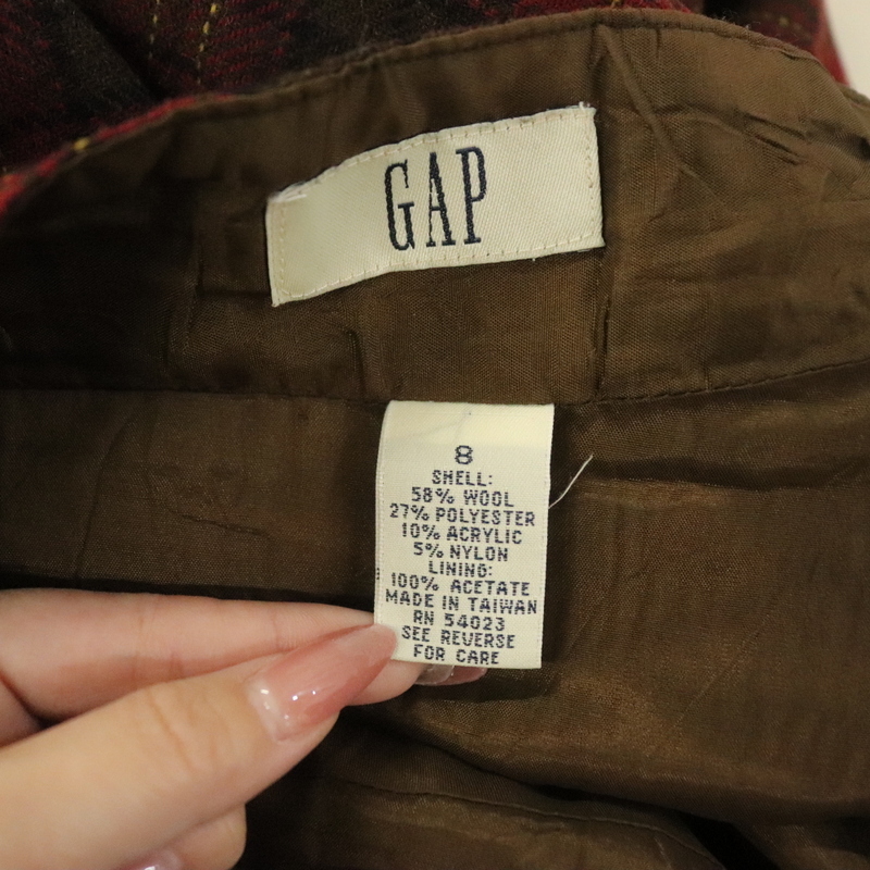 商品名 G118 90sビンテージ GAP ウールスカート ギャップ■1990年代製 表記8サイズ 赤 チェック ロング丈 古着 アメカジ ストリート 80s 70s 激安