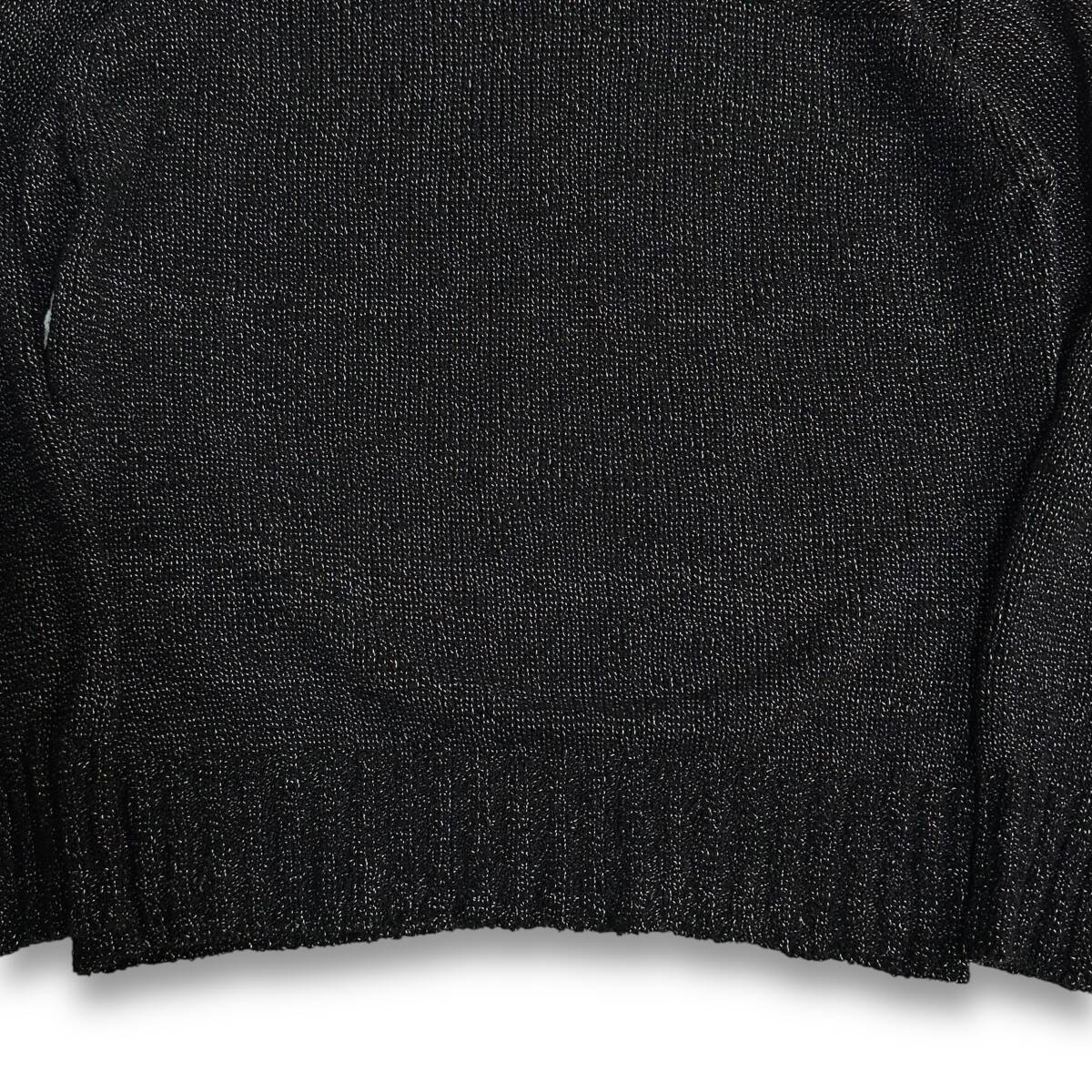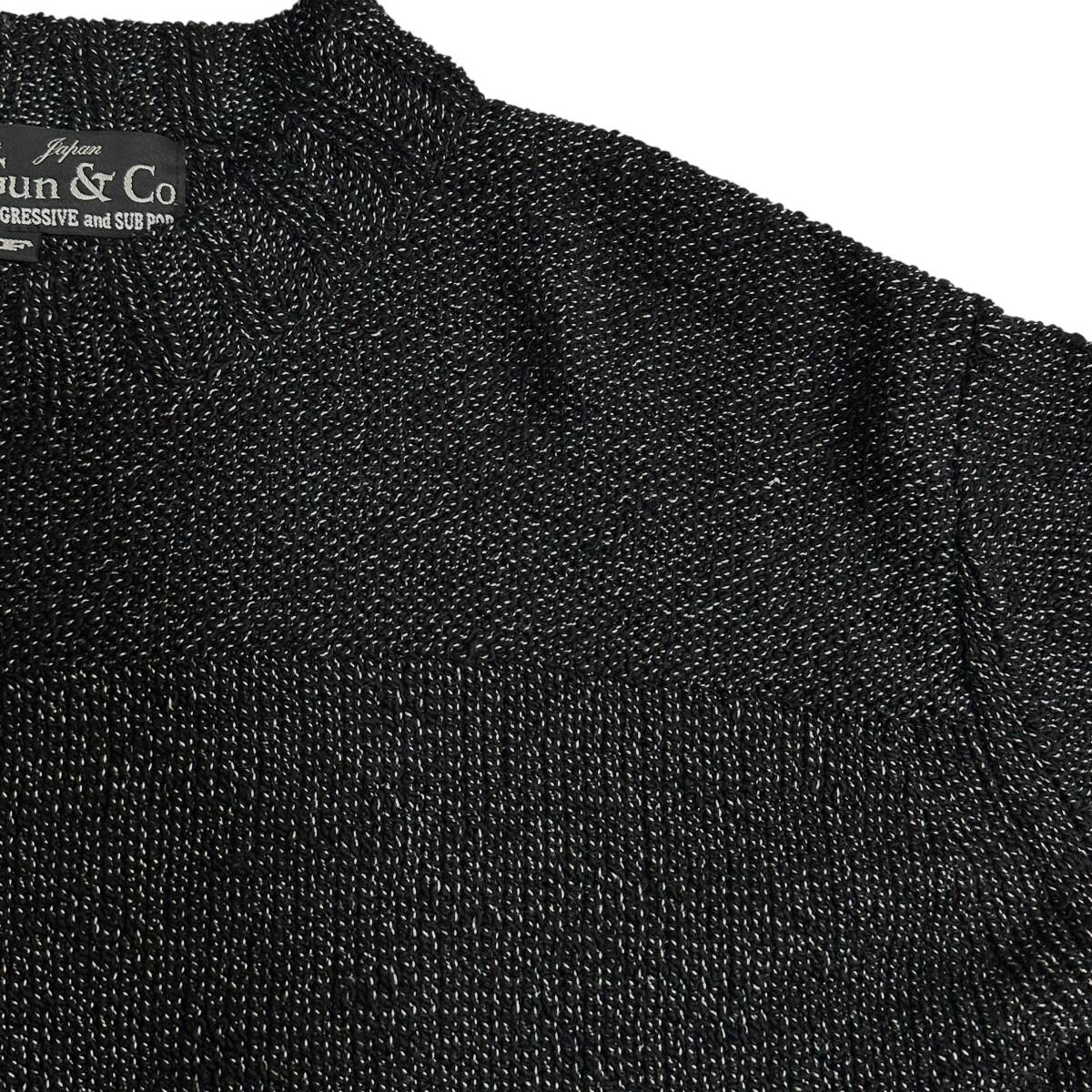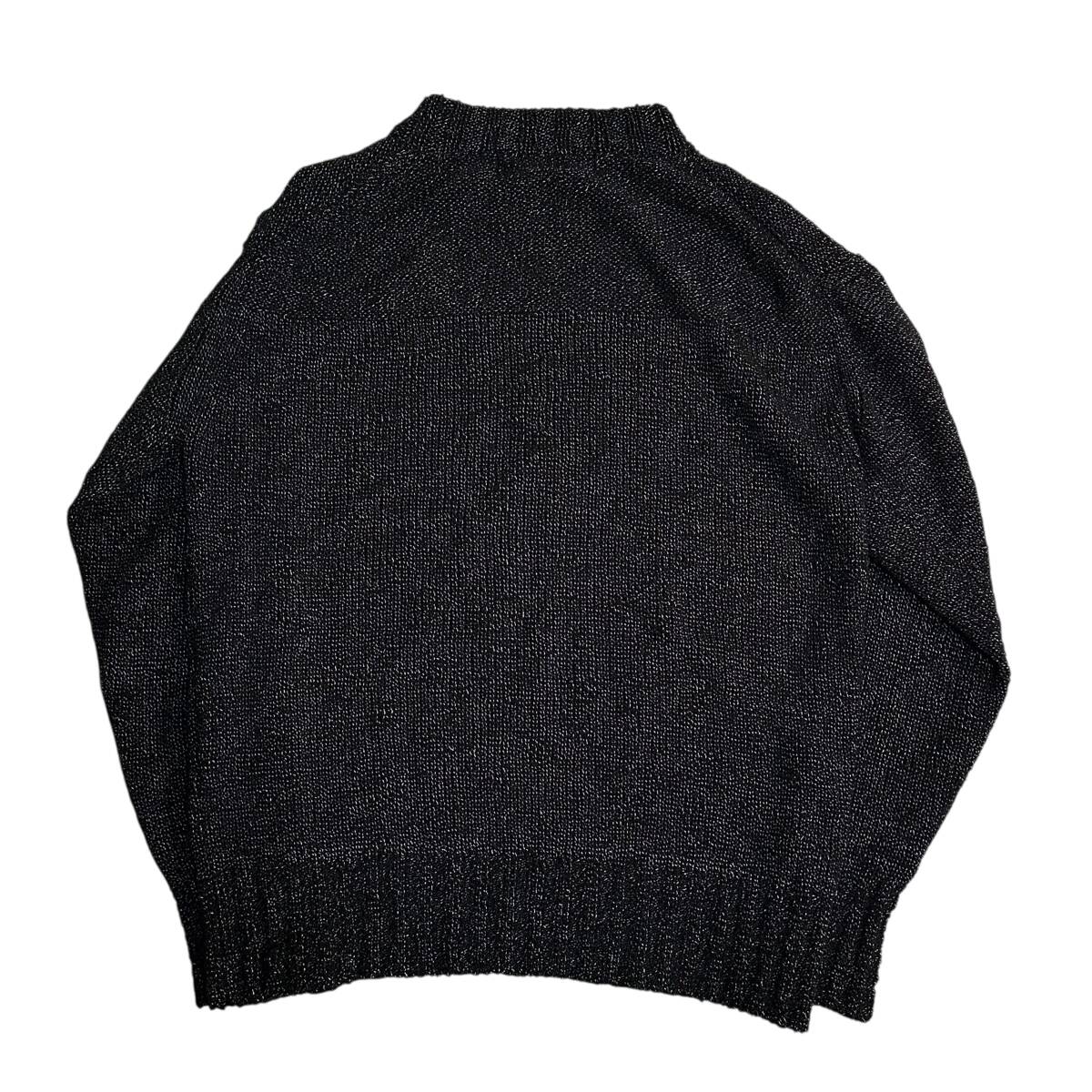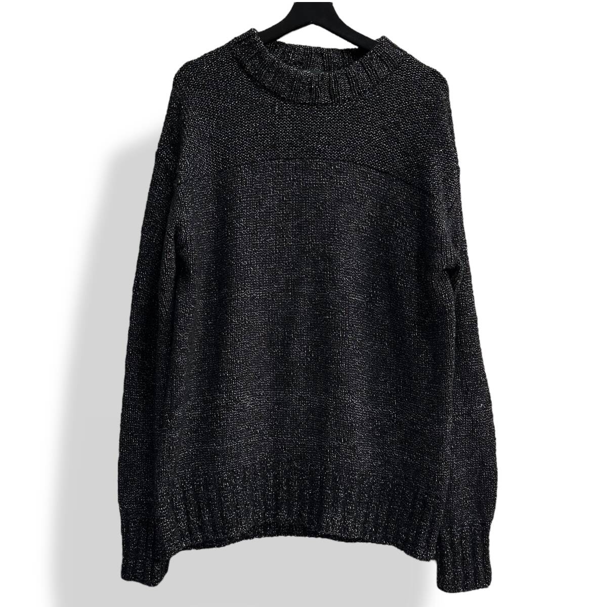 ゆったりしたフォルムデザイン、ブラックにホワイトの糸も織り交ぜた編み込みニット