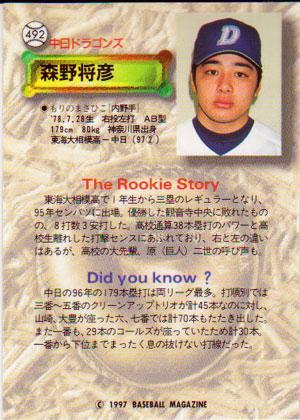 ★中古★トレカ★BBM97★ルーキーカード【#492 森野将彦 中日】★