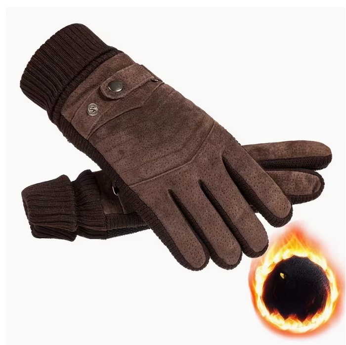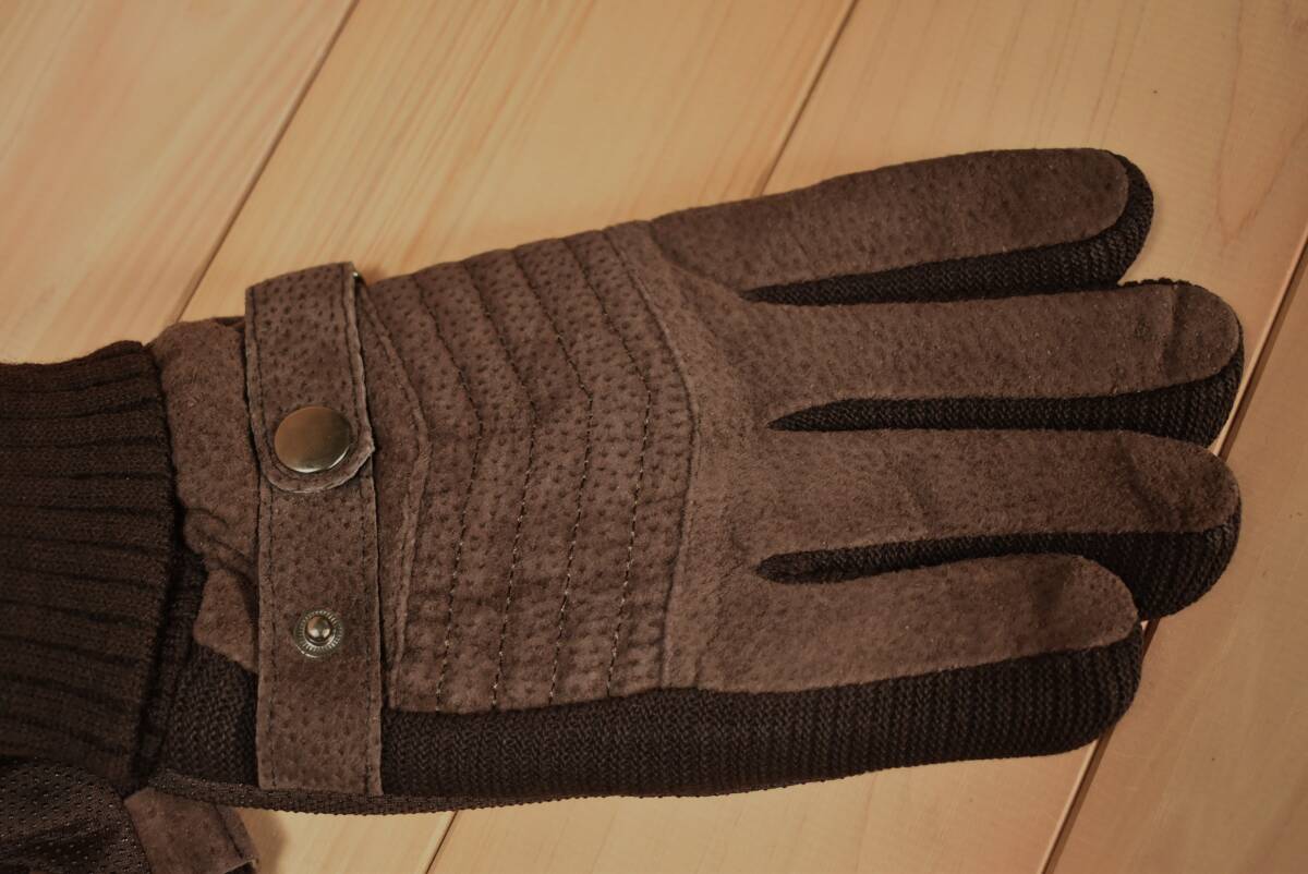 ◎メンズ Lサイズ ブラウン プレミアム豚皮&ポリエステルの手袋  ぽかぽか裏地 厚手防寒手袋 運転用