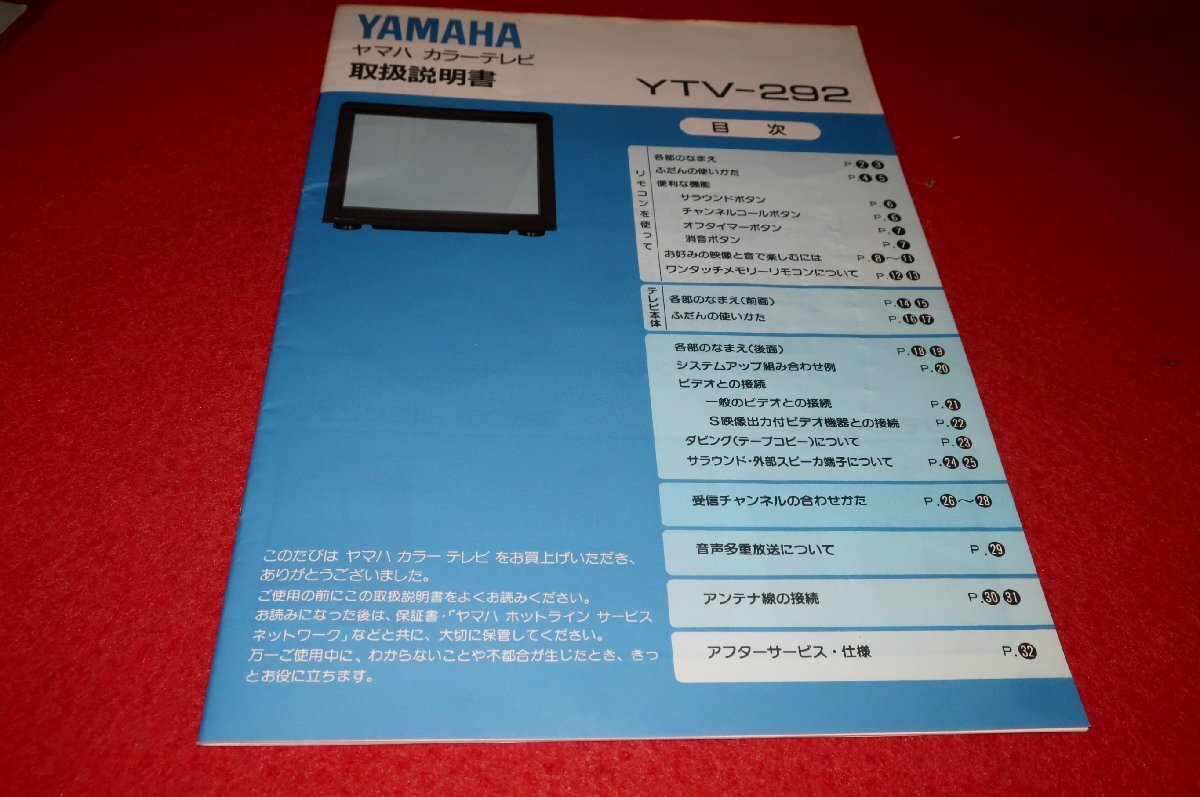 0724T1/1609■取扱説明書■ヤマハ カラーテレビ【YTV-292】YAMAHA/TV/映像機器/取説(送料180円【ゆ60】