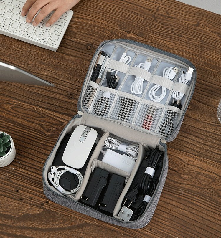 収納ポーチ pcアクセサリー収納 小物入れ 大容量 防水 モバイル機器収納 旅行出張 軽量 多機能 男女兼用 hw537
