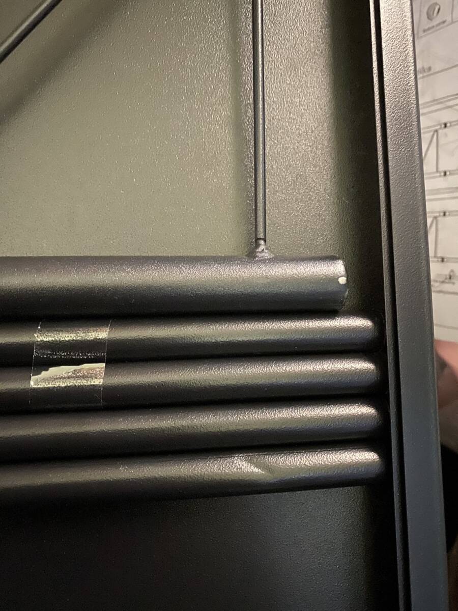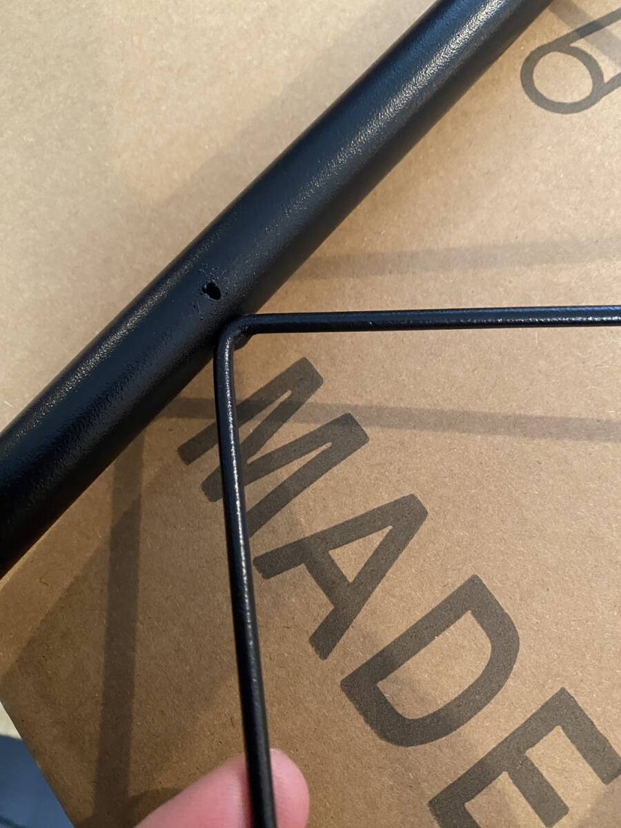 本体に汚れと、棚板の塗装の剥がれや少し凹みがわかりやすいため、訳あり価格で販売しております。