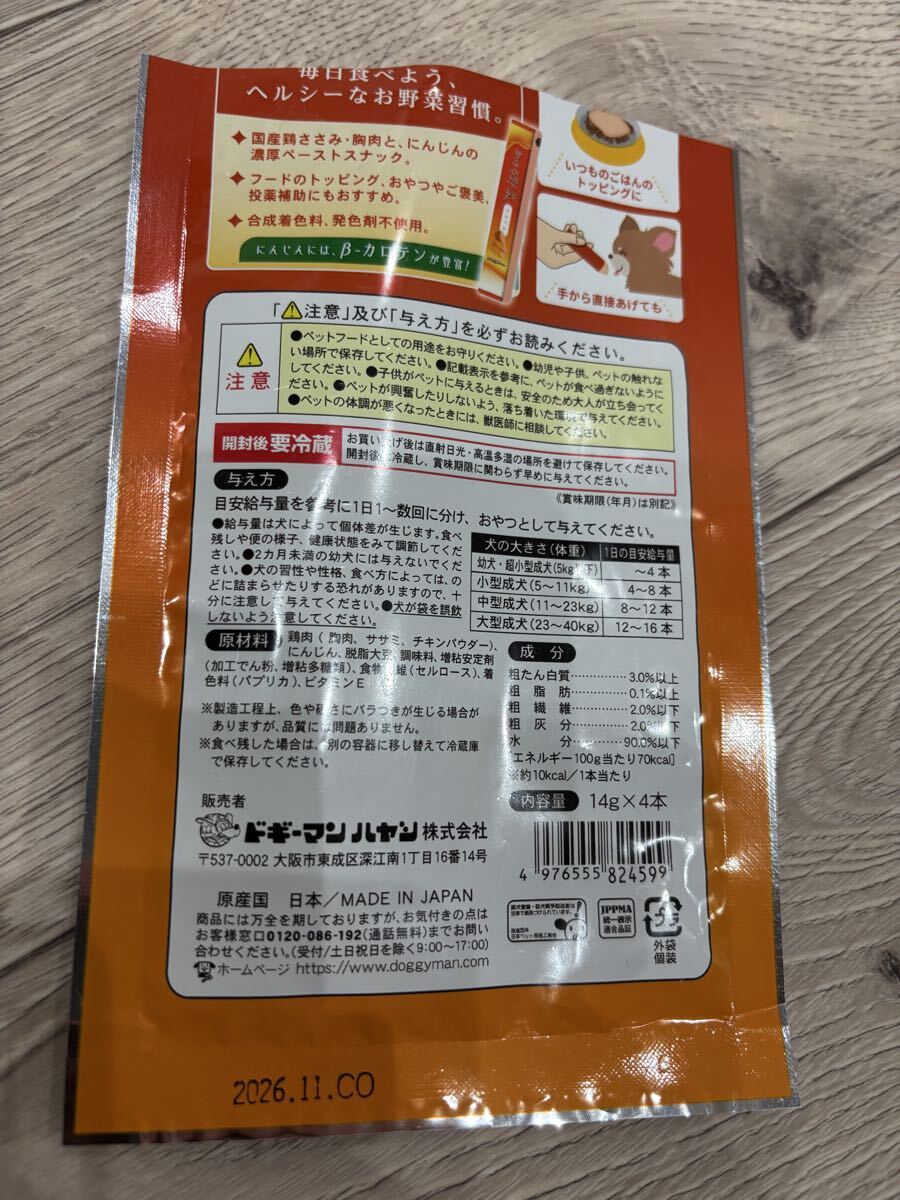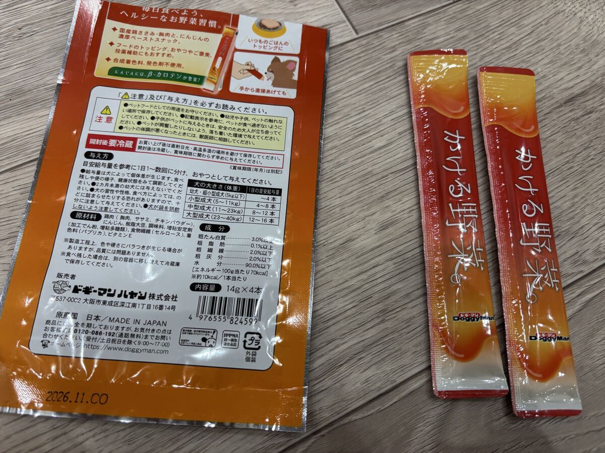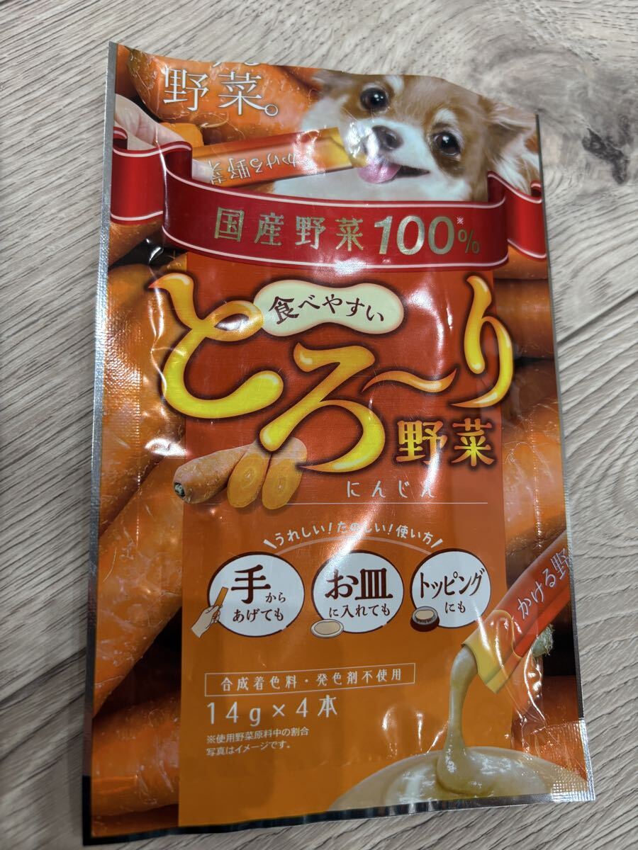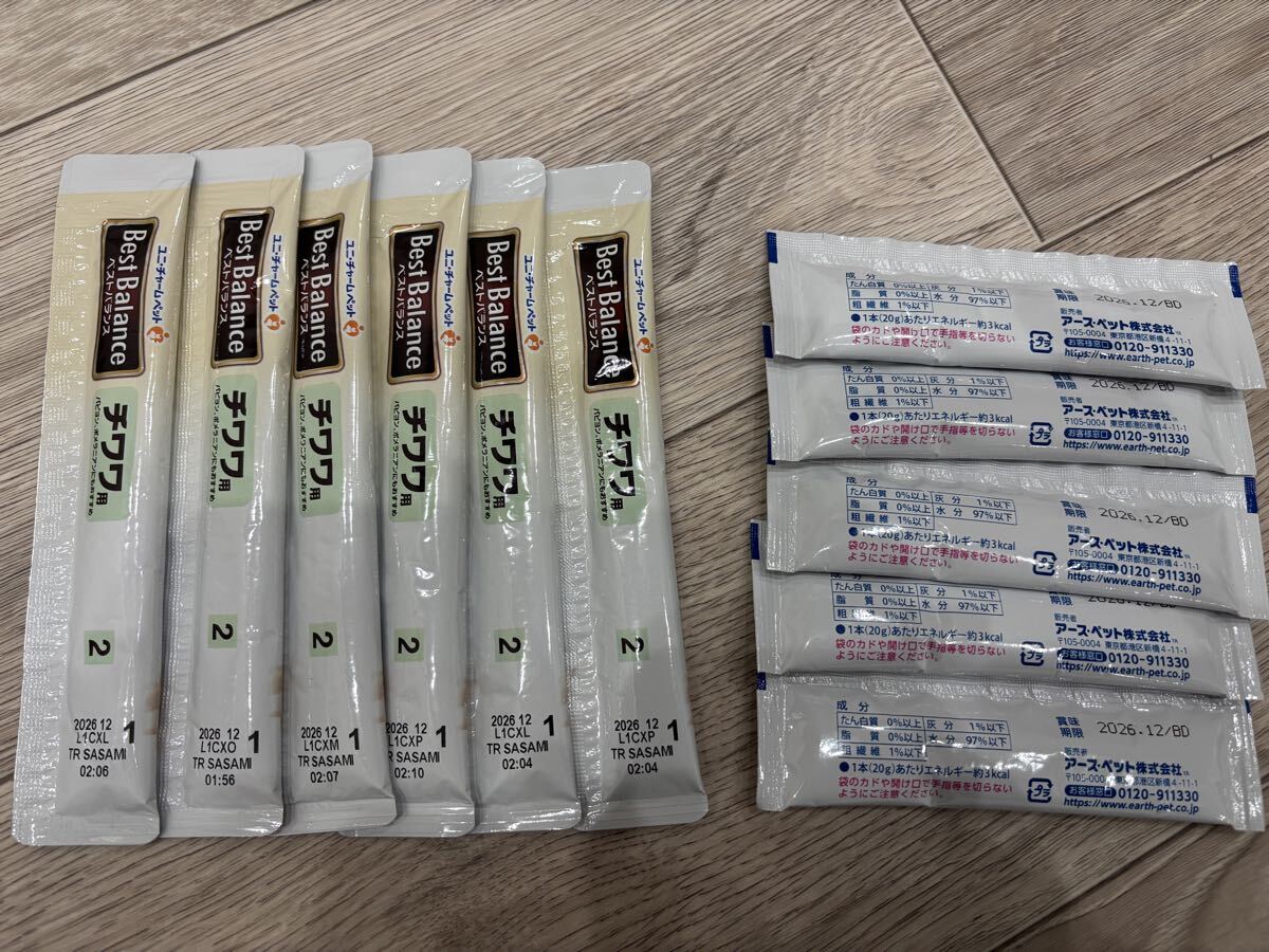 全犬種対応のチキン、サーモン、ビーフフレーバーのスティック状おやつと飲料のセットです。