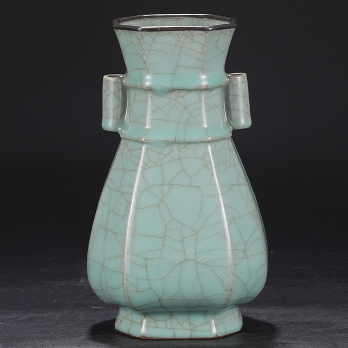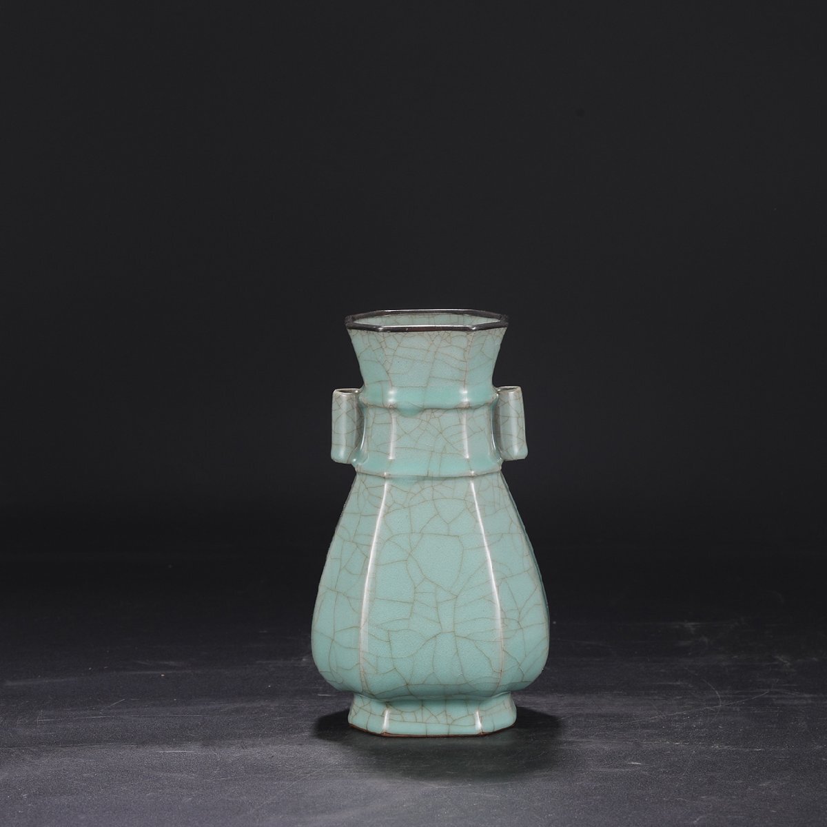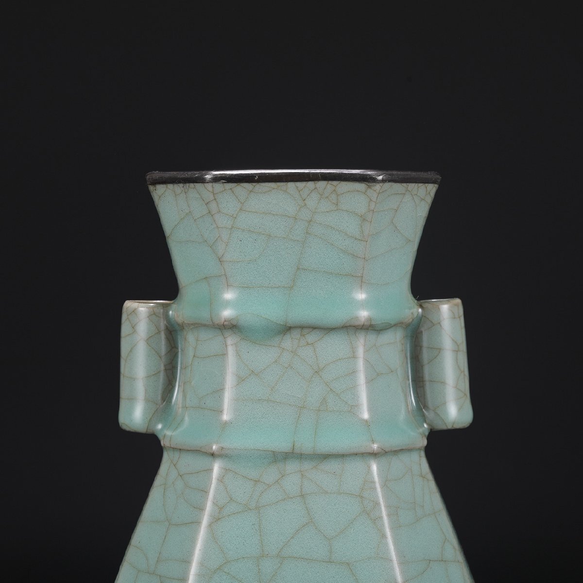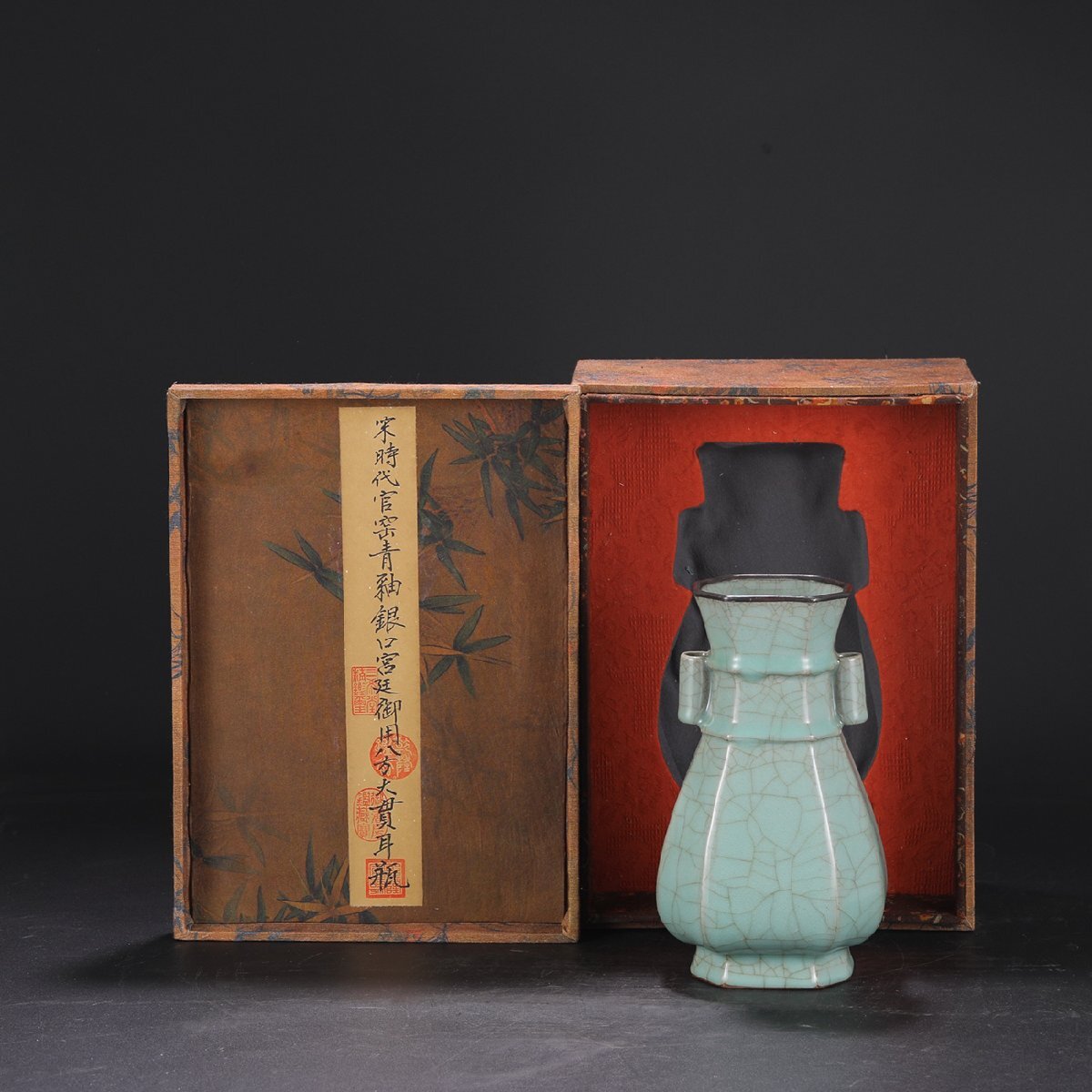 【安】南宋時代 官窯青釉包銀口宮廷御用貫耳瓶 共箱 唐瓷 古陶瓷 古美味 中国古美術 古董品 199 サイズ(約寸) |