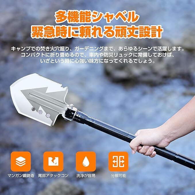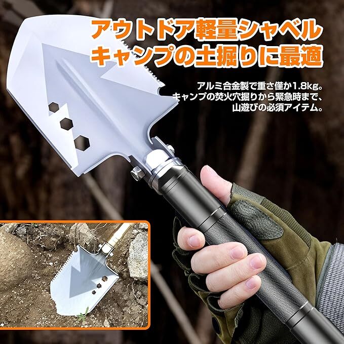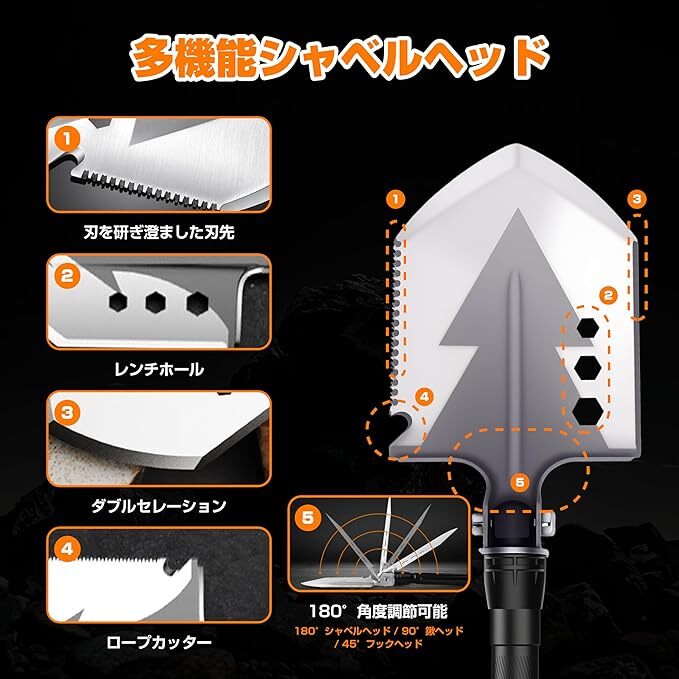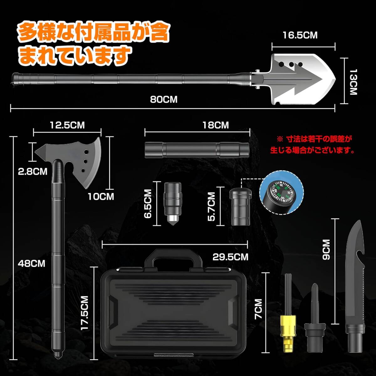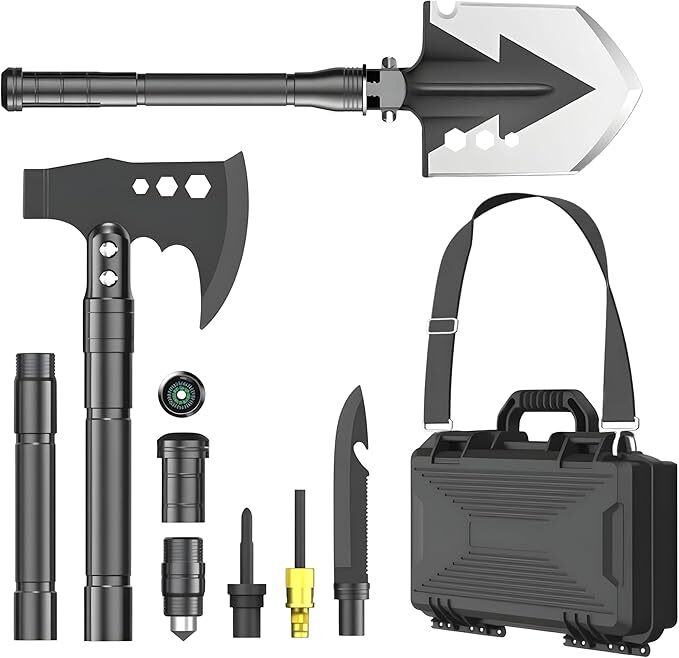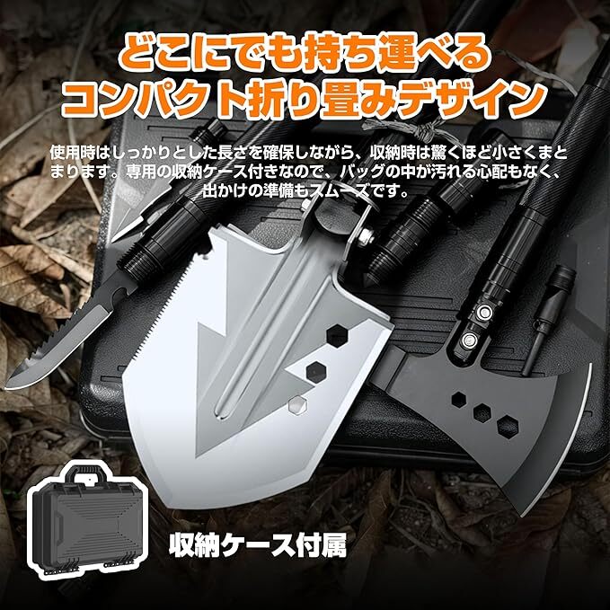Amazon | 【防災/キャンプ多機能ツールセット】折りたたみ式スコップ + 斧 + ナイフ アウトドア用|高炭素鋼製・防錆加工・収納ケース付き|登山 緊急対策 キャンプ ナイフ 車載ツール