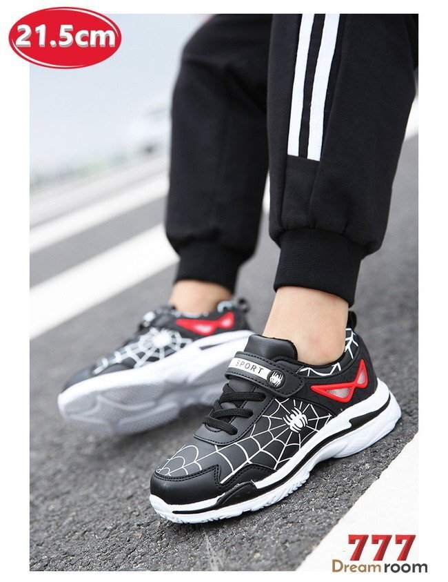スムース素材 スパイダー デザインスニーカー 【ブラック 21.5cm】 韓国子供服 キッズ シューズ 子供用 男女