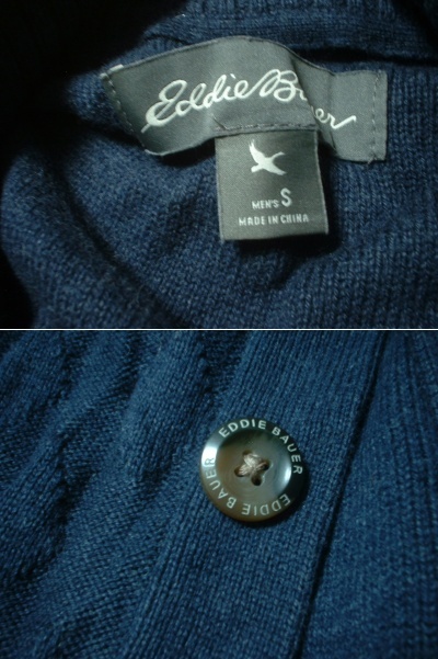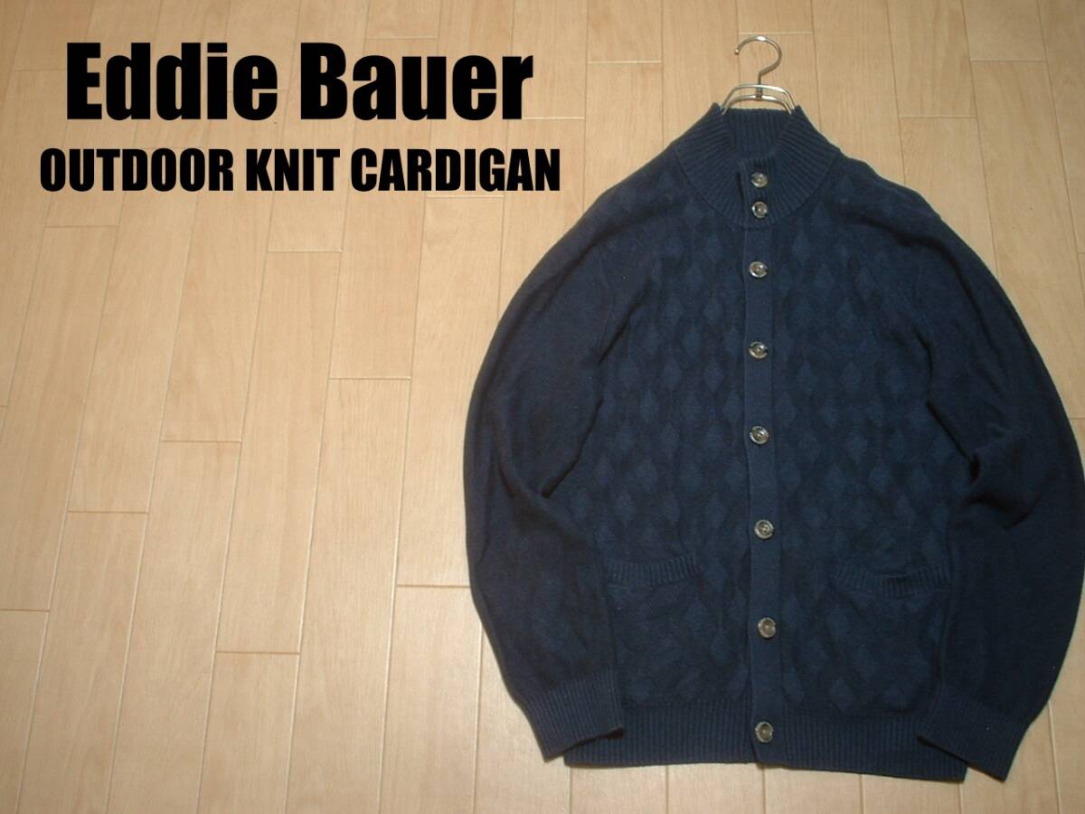 Eddie BauerアウトドアニットカーディガンSボタンアップセーター紺ネイビー正規エディーバウアーOUTDOORアーガイル編み刻印釦アルパイン