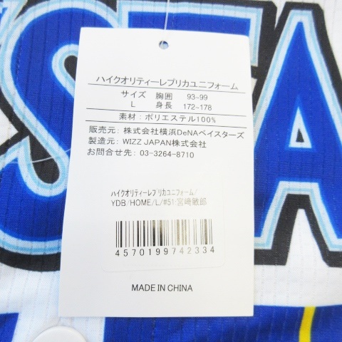 未使用品 ハイクオリティーレプリカユニフォーム 横浜DeNaベイスターズ HOME No.51 宮崎 敏郎 半袖シャツ ロゴ 野球 観戦 ファン L 白