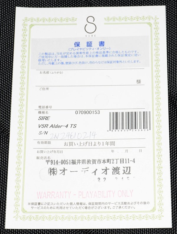 ギグバック(純正)、取扱説明書、保証書(店名押印あり)、冊子、六角レンチ×2、ブリッジカバー、ネジ×2 (画像に載っているものが全てです) |