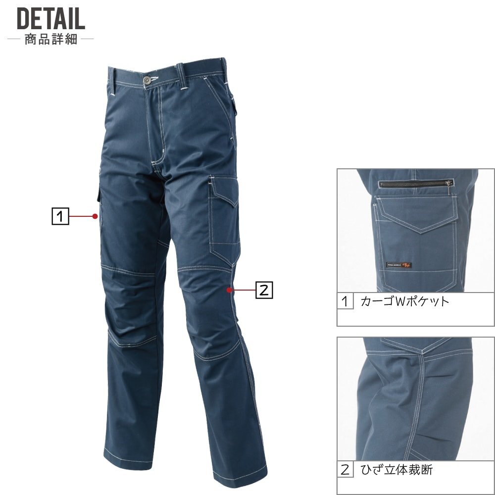 特長:膝ダーツ/右ファスナー付ダブルポケット/ノータック