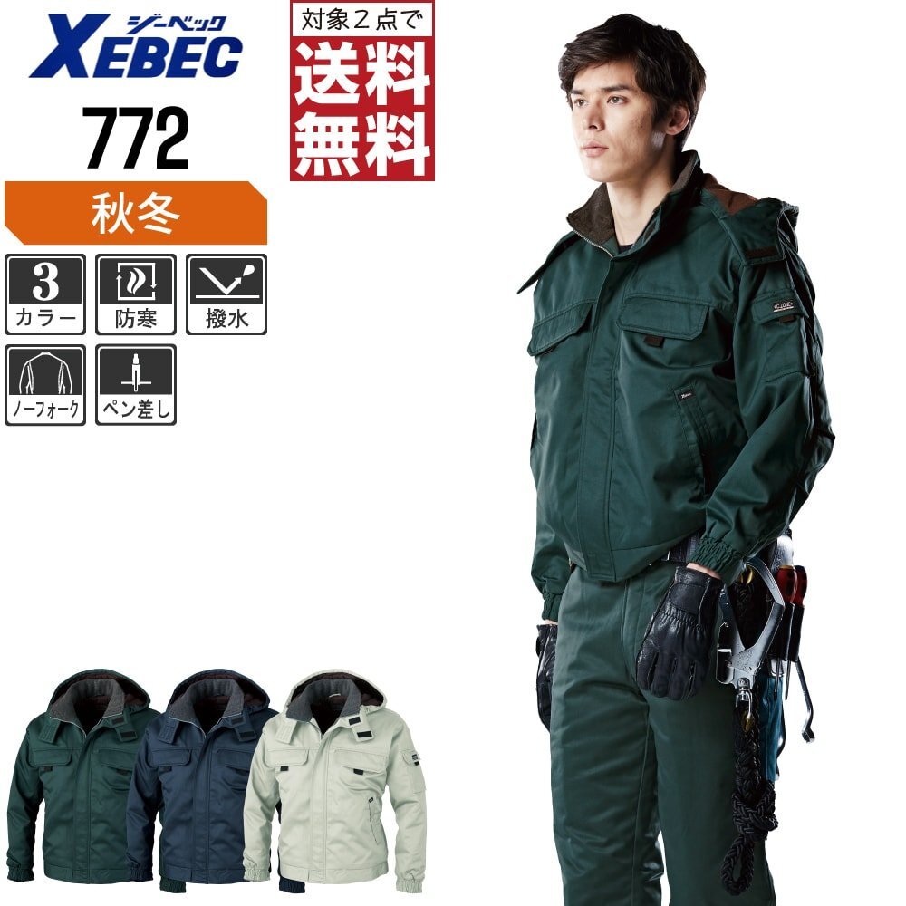 ジーベック 秋冬 中綿 防寒 ブルゾン 撥水加工 脱着式フード 袖口マジックテープ 772 色:コン サイズ:M ★ 対象2点 送料無料 ★