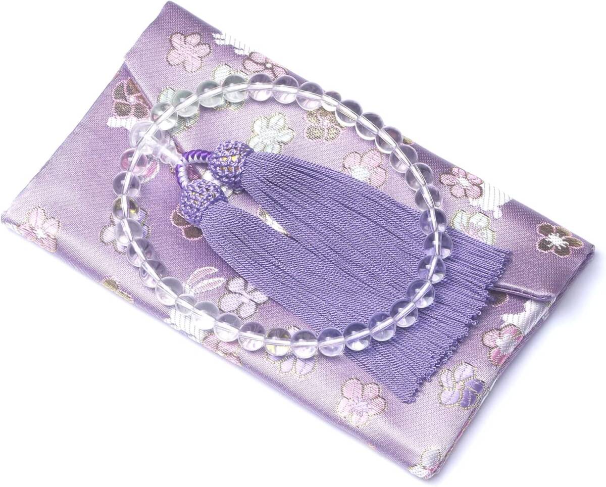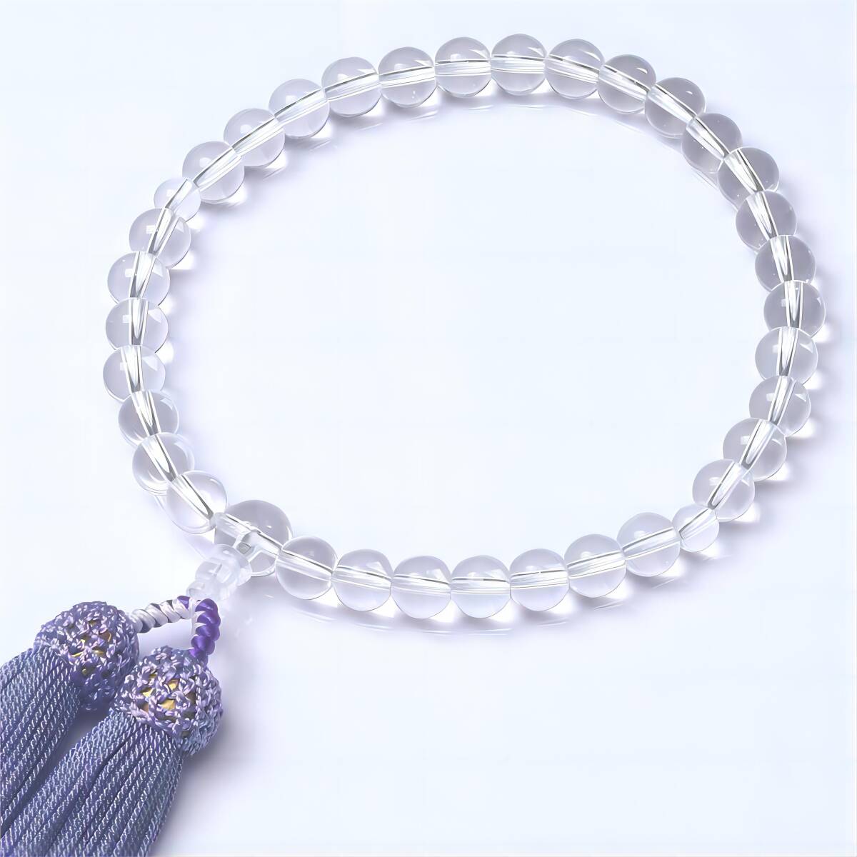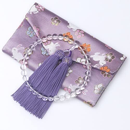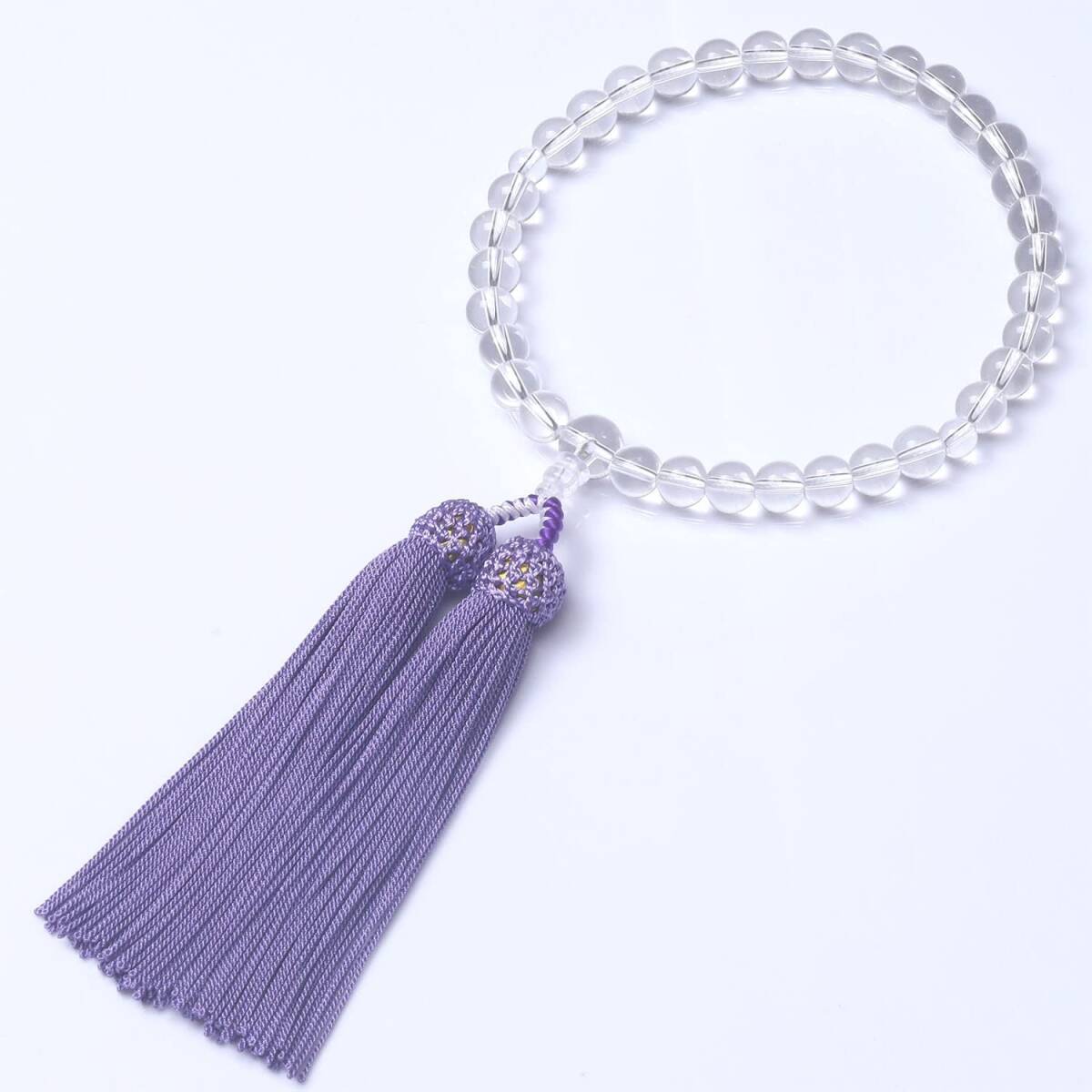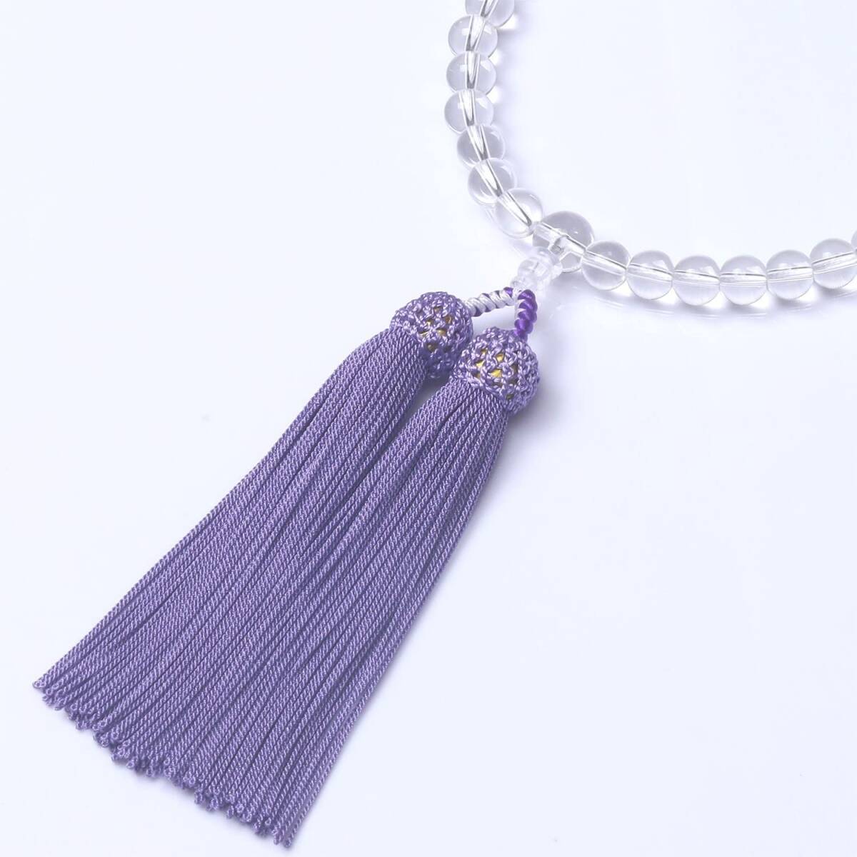 ご覧いただきありがとうございます。気になる商品にはお気軽に、いいね、コメントして下さい。商品番号:C-1女性用数珠 数珠 マグネット式数珠袋付き 本水晶 念珠 じゅず 手作り念珠 葬式 葬儀 墓参り 法事 念誦 お彼岸 お盆 パワーストーン 全ての宗派で使用頂け【製品情報】主玉:本水晶8mm天玉:本水晶6mm親玉:本水晶10mm房色:藤色【エレガントな数珠】エレガントな水晶を使用しており、とても女性らしくて綺麗な念珠です。仕上げもちゃんとしていて、手触りがとても良いです。お値段から見えない高級感があり、上品な雰囲気を演出してくれます。【落ち着いた藤色】色は落ち着いた藤色です。渋い数珠を嫌がる10代20代などの若い方に特におススメしますが、愛らしくエレガントな数珠をお望みの年配の方にももちろん最適です。【優しいサイズ】女性の手が小さめでで、この数珠は8mm の玉を採用しました。程度いい大きさで、女性にぴったりです。【御念珠入】高級なマグネット式数珠袋も付属しており、一流の職人による技術で作られており、大きな紋織物の生地を裁断し、一つ一つ丁寧に仕上げています。品質にはこだわり、価格はお手頃にご提供できるようにしました。【いろんな場合活躍】玉でも房でも上品なので、お仏壇に手を合わせるとき、お寺に行くときなど、いつでも使用頂けます。また、仏事にだけ使うことだけではなく、お守り代わりに普段から持ち歩くこともお勧め。【すべての宗派に使用可能】この数珠なら色んな宗派にも使用できます。例えば、天台宗、浄土宗、真言宗、浄土真宗、日蓮宗、曹洞宗、臨済宗など。女性向けとして、幅広い年齢層にわたって持てるものです。【長く使用頂け】水晶は硬度が高いので瑕がつくこともなく、熟練の職人が手作りした数珠で、品質と耐久性がとてもよく、長くご使用頂けます。より良いお取引を心がけております。宜しくお願い致します。