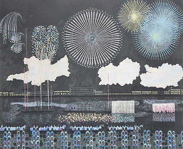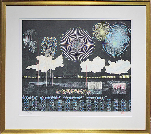 ■山下清 【両国の花火】 リトグラフ 印章有り エディション有り