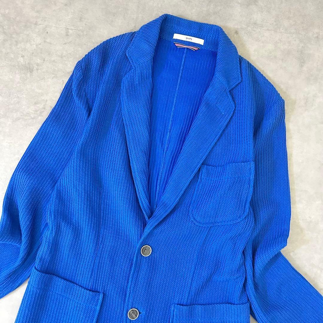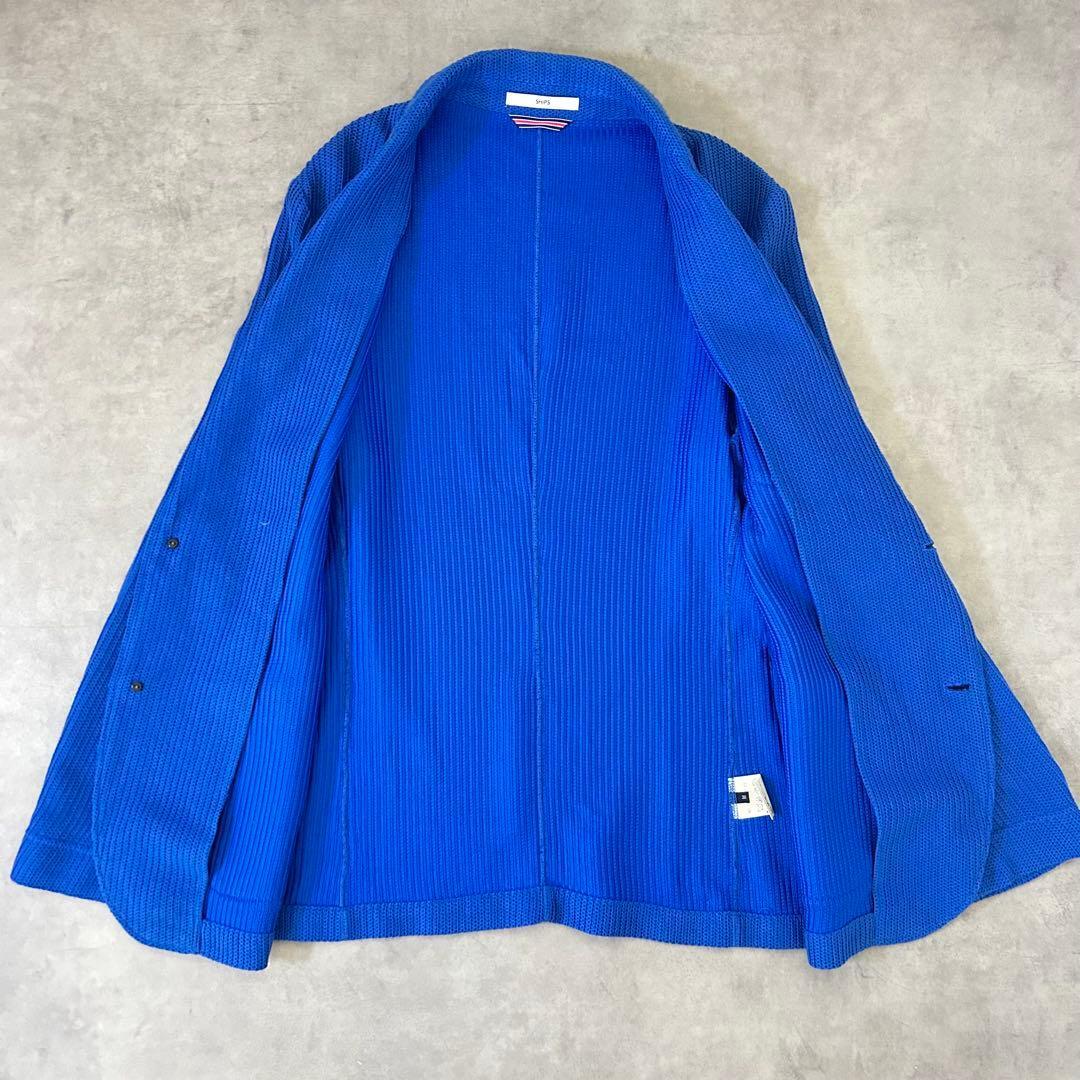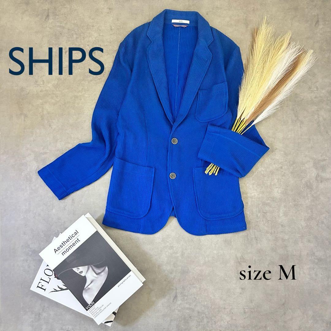 SHIPS(シップス)の柔らかワッフル編みジャケット、爽やかなブルー Mサイズです。軽やかな着心地で春先〜秋まで長く活躍するアイテム。