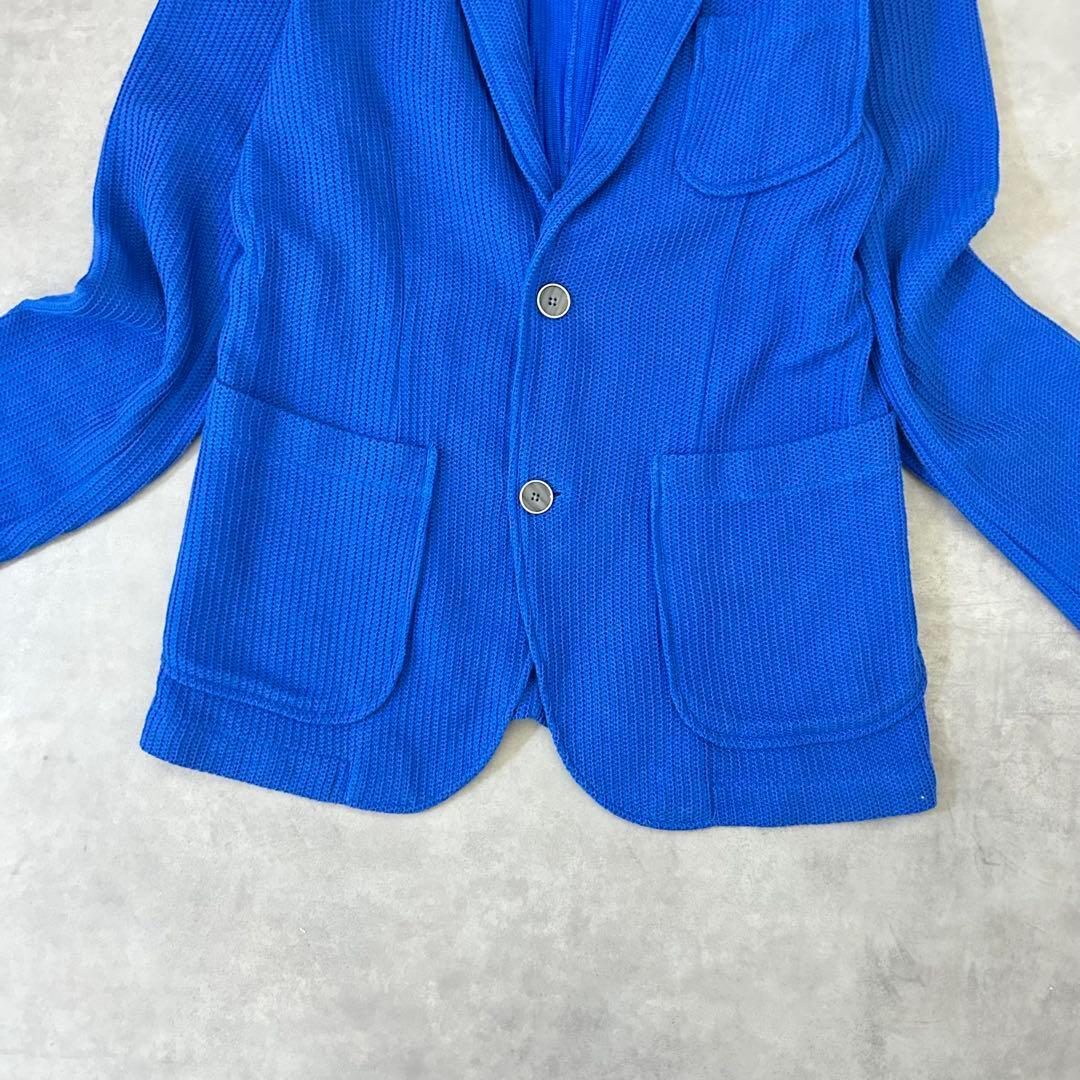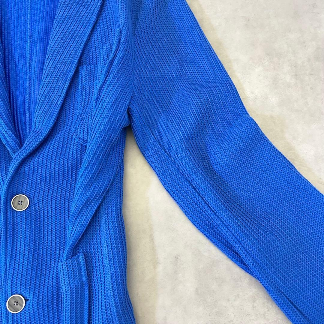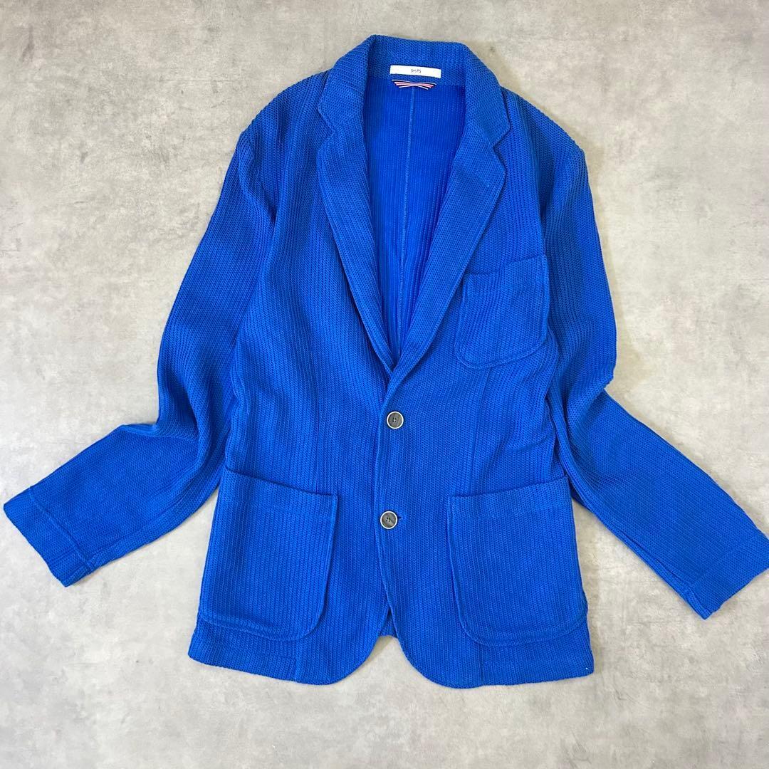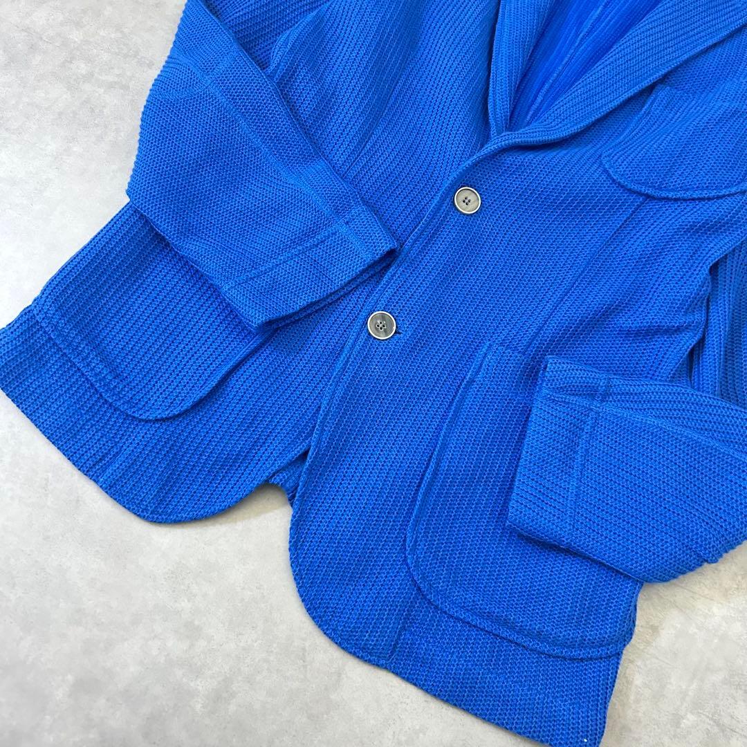 SHIPS(シップス)の柔らかワッフル編みジャケット、爽やかなブルー Mサイズです。軽やかな着心地で春先〜秋まで長く活躍するアイテム。