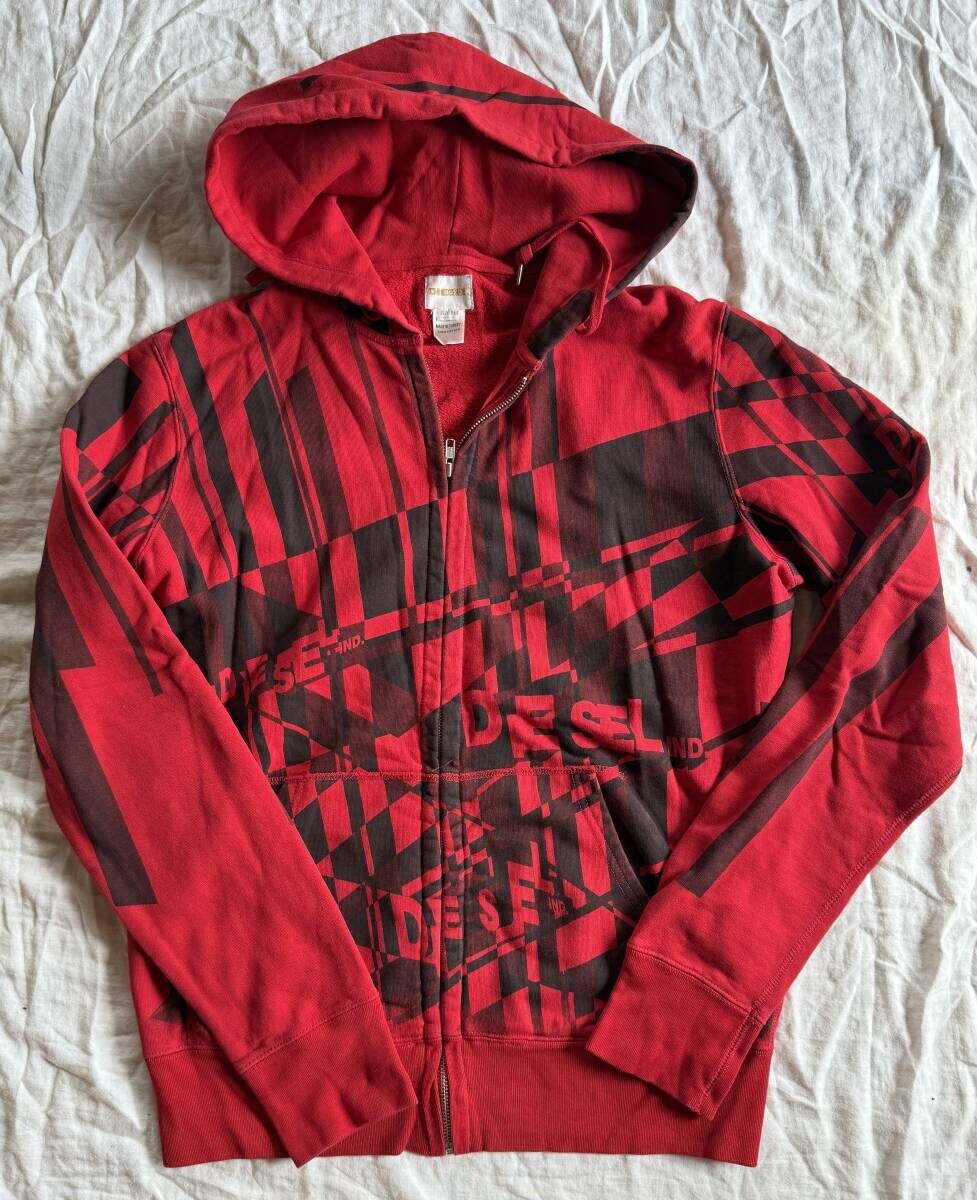 ディーゼル パーカー 赤 柄物 ジップアップ ジャケット XL