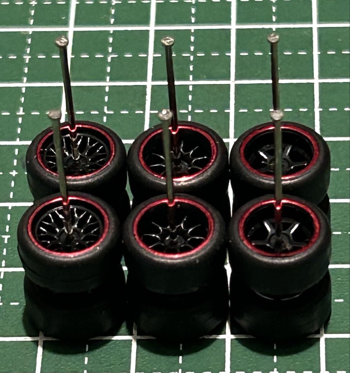 カスタムホイール タイヤ カスタムパーツ 1/64 1 64 1:64 トミカ ホットウィール MINI GT 等に最適 赤リム 3種類