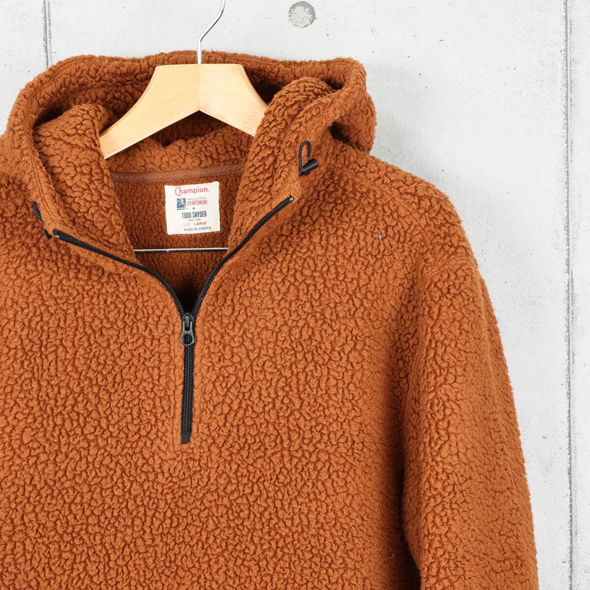 【ブランド】 Champion×TODD SNYDER 【アイテム】 フリース素材 ハーフジップパーカ 【商品説明】 アメリカで購入しました、トッドスナイダーとチャンピオンのコラボラインのフリース素材が使用されたハーフジップタイプのパーカになります。 【カラー】 ブラウン 【コンディション】 使用に伴う色落ちや擦れなどがあります。 【サイズ】 サイズ:L 身幅:64cm 肩幅:52cm 着丈:65cm 袖丈:63cm |