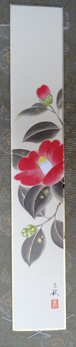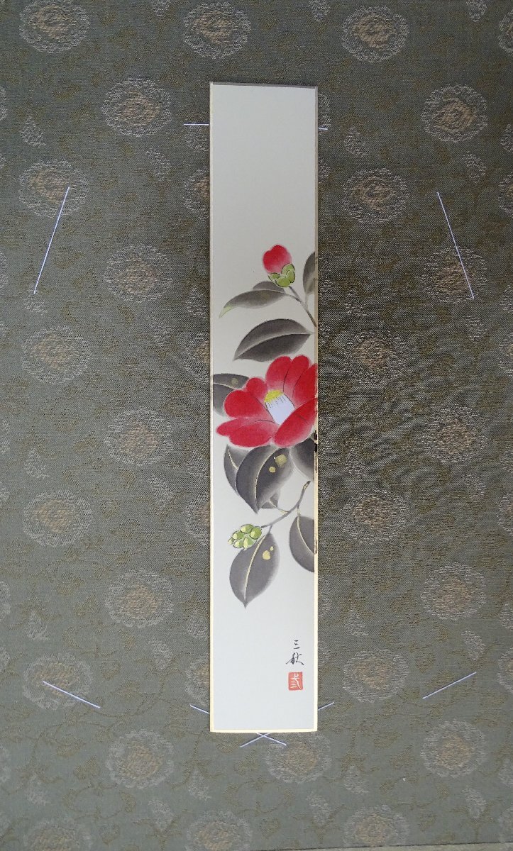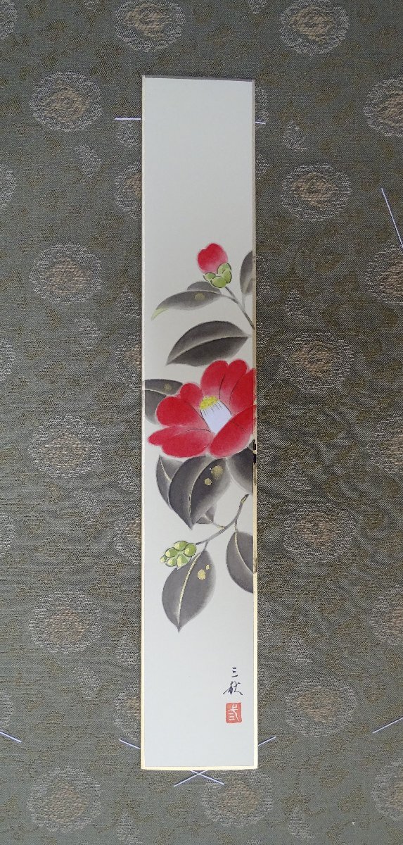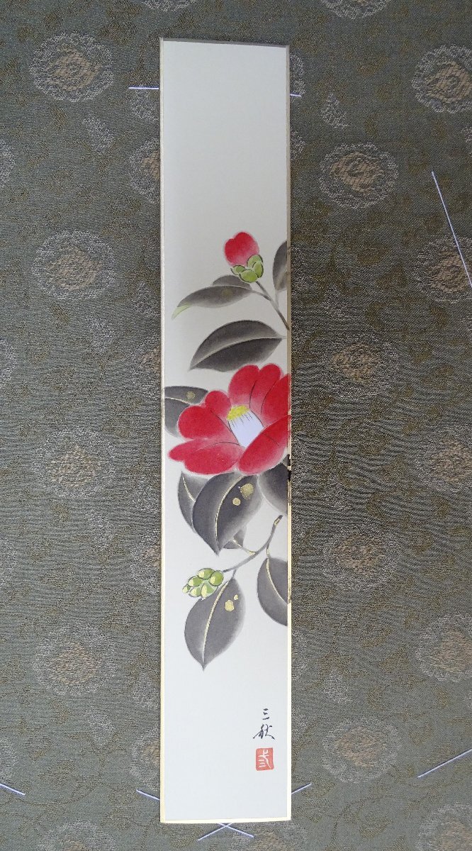 ・作者: 中島 三秋・画題:椿 ・技法: 色紙絵直筆・色紙掛け軸 ・NO-15.8
