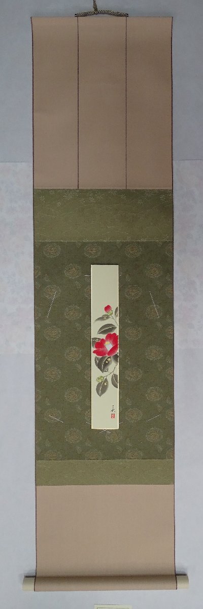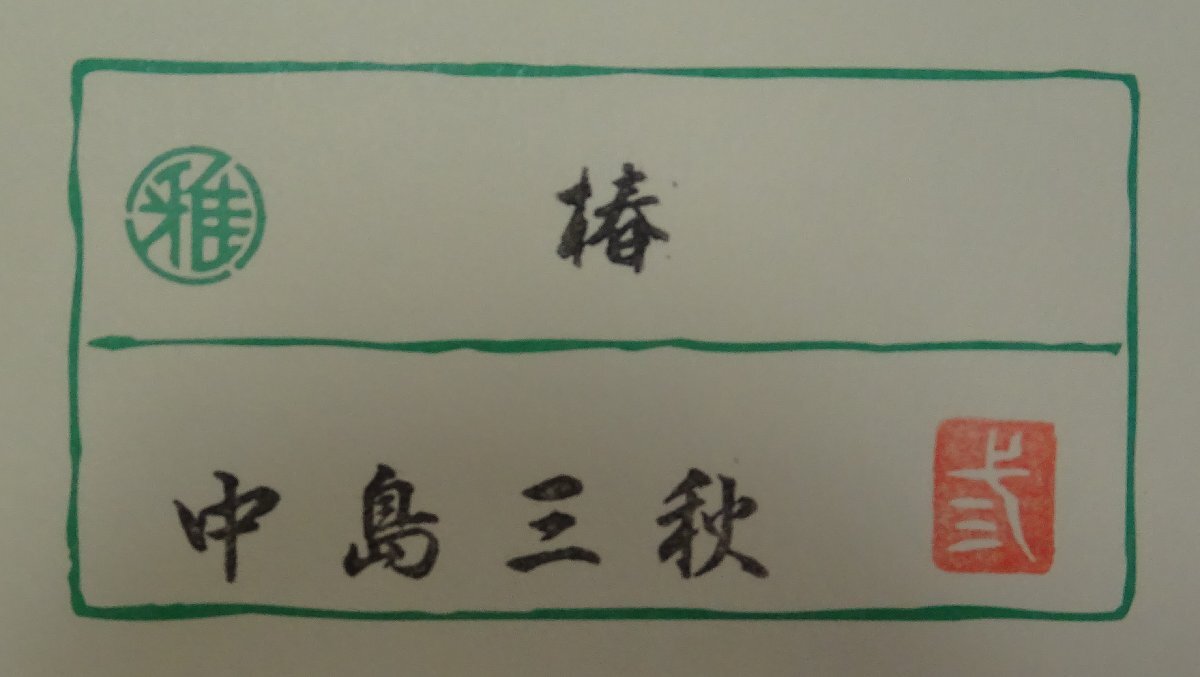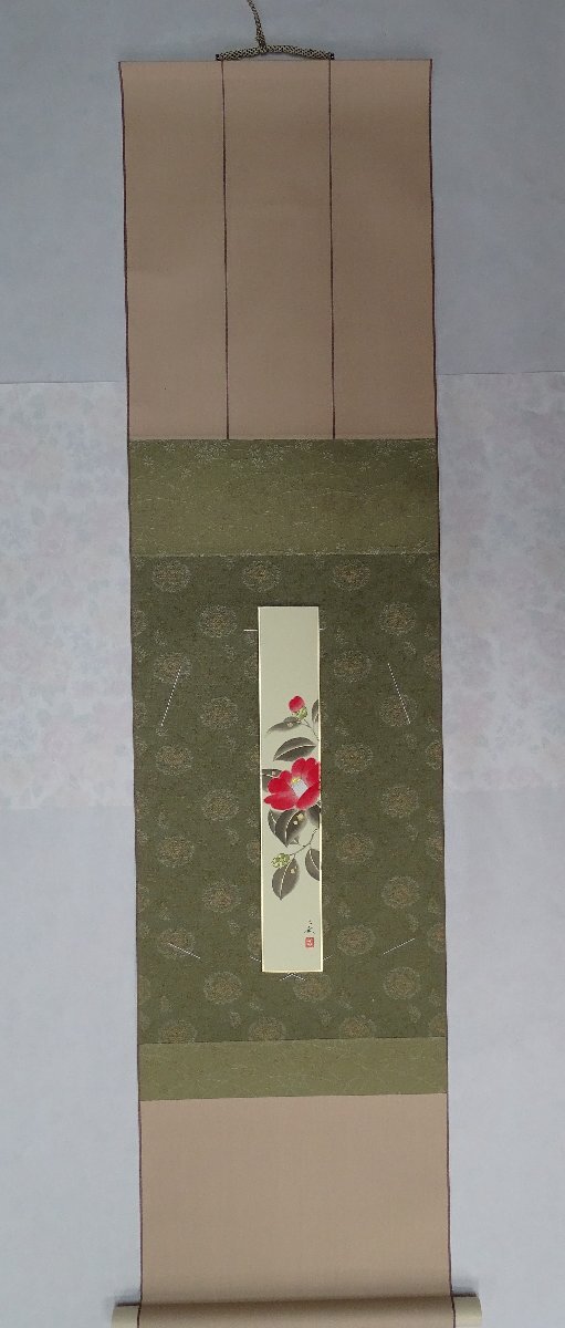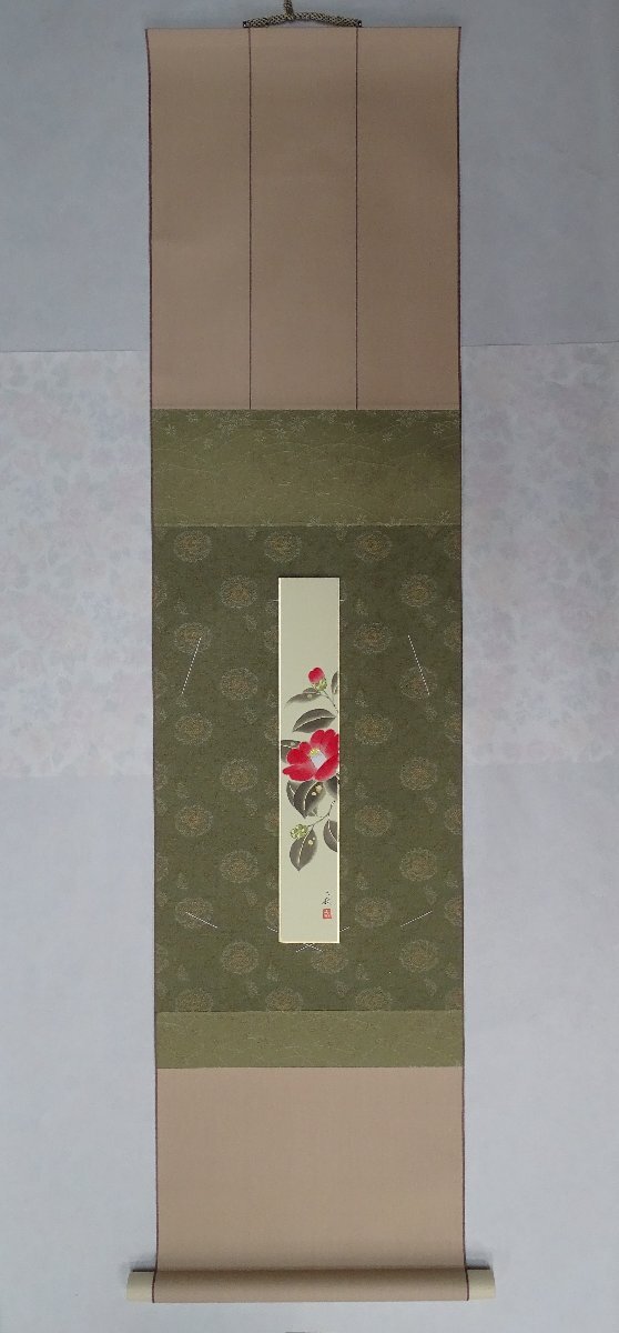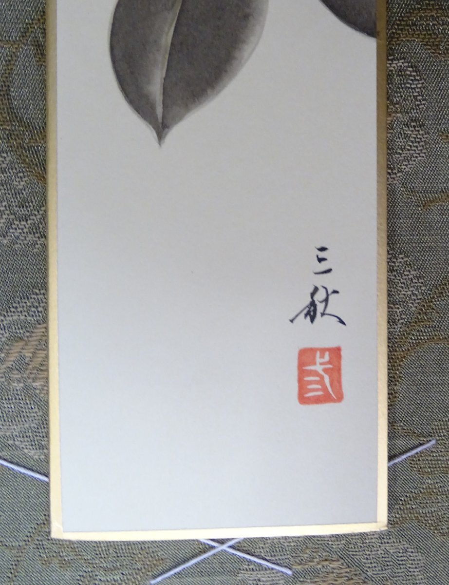・作者: 中島 三秋・画題:椿 ・技法: 色紙絵直筆・色紙掛け軸 ・NO-15.8