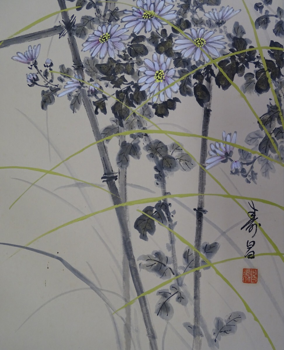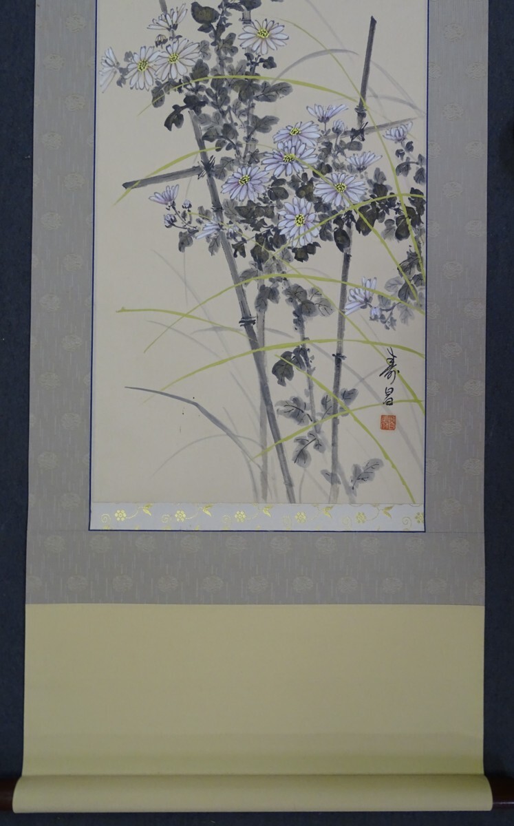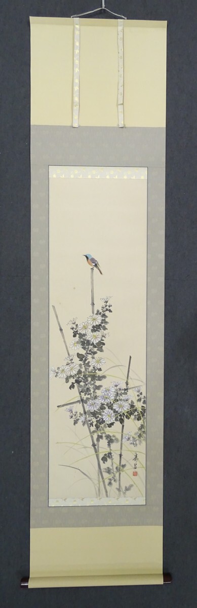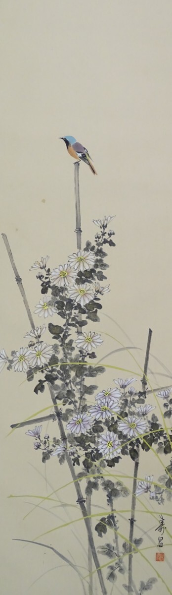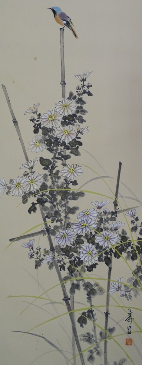 ・品名:掛軸 ・作者:竹田寿昌 ・画題:「菊に小禽」・技法:日本画(直筆)(B2-HIO-R4-6-12-38.5)