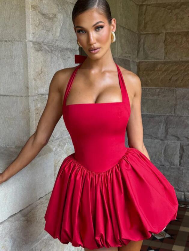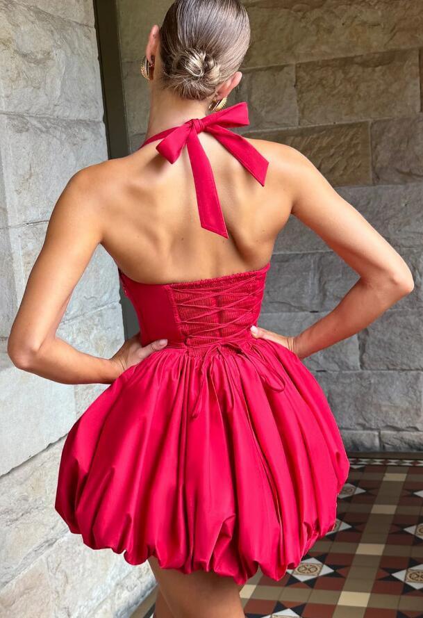 405 ワンピースladiesレディース ◇ 綺麗めシルエット ◇ 素敵   ホルターネック  ドレス  red