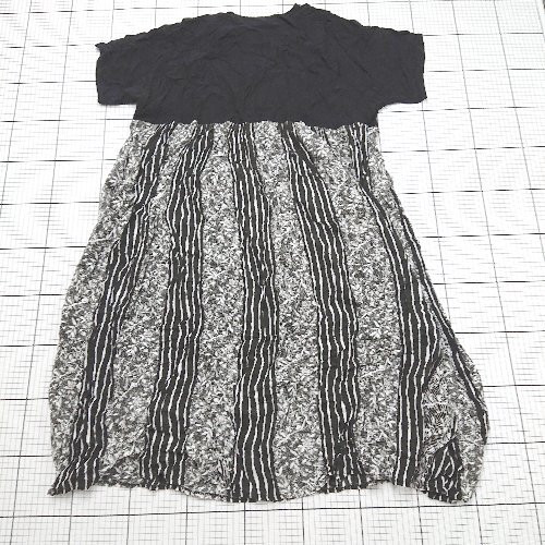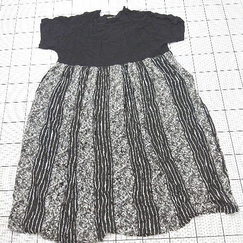 ◇ ⊂ FREE STYLISTS フリー スタイリスト 総柄 半袖 ロング 総柄ロングワンピース サイズF ブラック系 レディース E