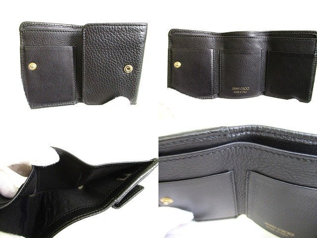 9278 【美品】 Jimmy Choo ジミーチュウ エンボススタッズ レザー 3つ折り 財布 コンパクト財布 メンズ レディース 特に目立ったダメージ等はなく、とても綺麗なお品です。 【ブランド】Jimmy Choo 【カラー】黒 【素材】レザー 【サイズ】幅:約10-21cm 高さ:約7.5cm 奥行き:約2cm ※あくまでも実寸なので多少の誤差はあるかもしれませんのでご了承ください。 【参考定価】-円 【製造刻印】- 【型番】NEMO EMG 【機能】札入れ×1、小銭入れ×1、カード入れ×3、ポケット×- 【付属品】ホログラム、取扱説明書、ギャランティーカード、箱 【商品状態 】A-B ランク |
