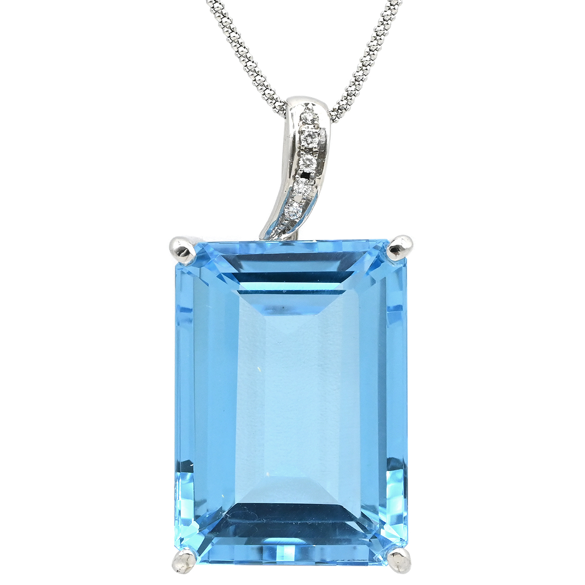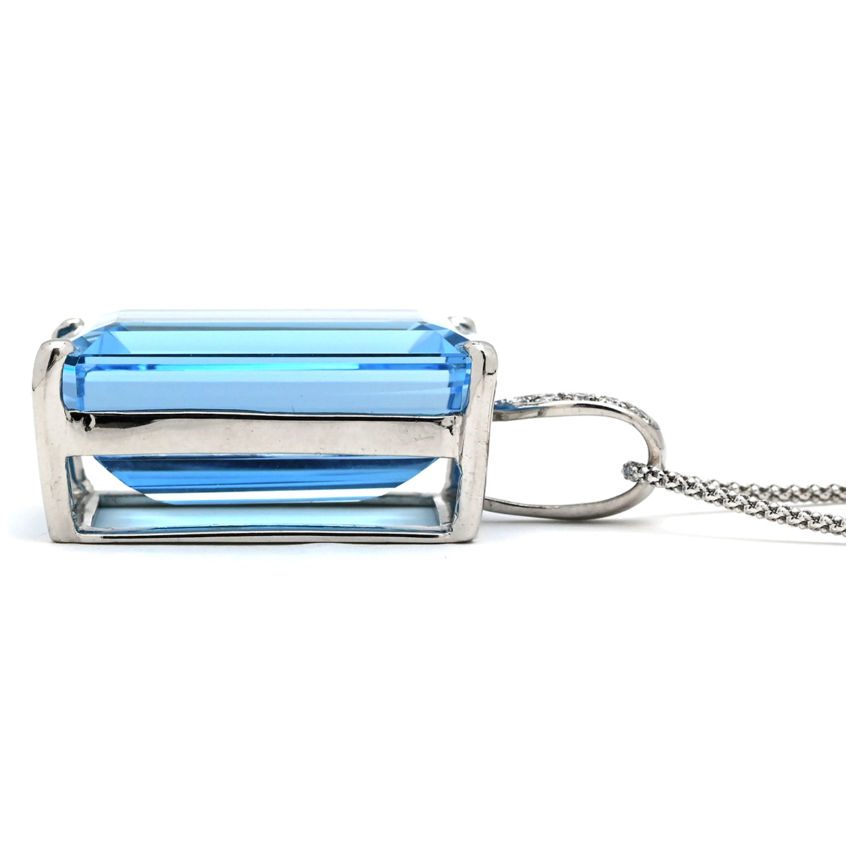ネックレス ブルートパーズ ダイヤ K18WG シルバー 青 ブルー ネックレス ダイヤモンド 四角 中古