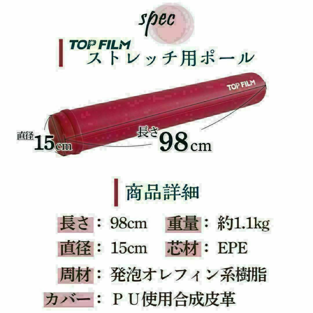長さ98cmのポールを採用しました。女性はもちろんのこと、男性の方もゆったりとストレッチできるポールとなっております。